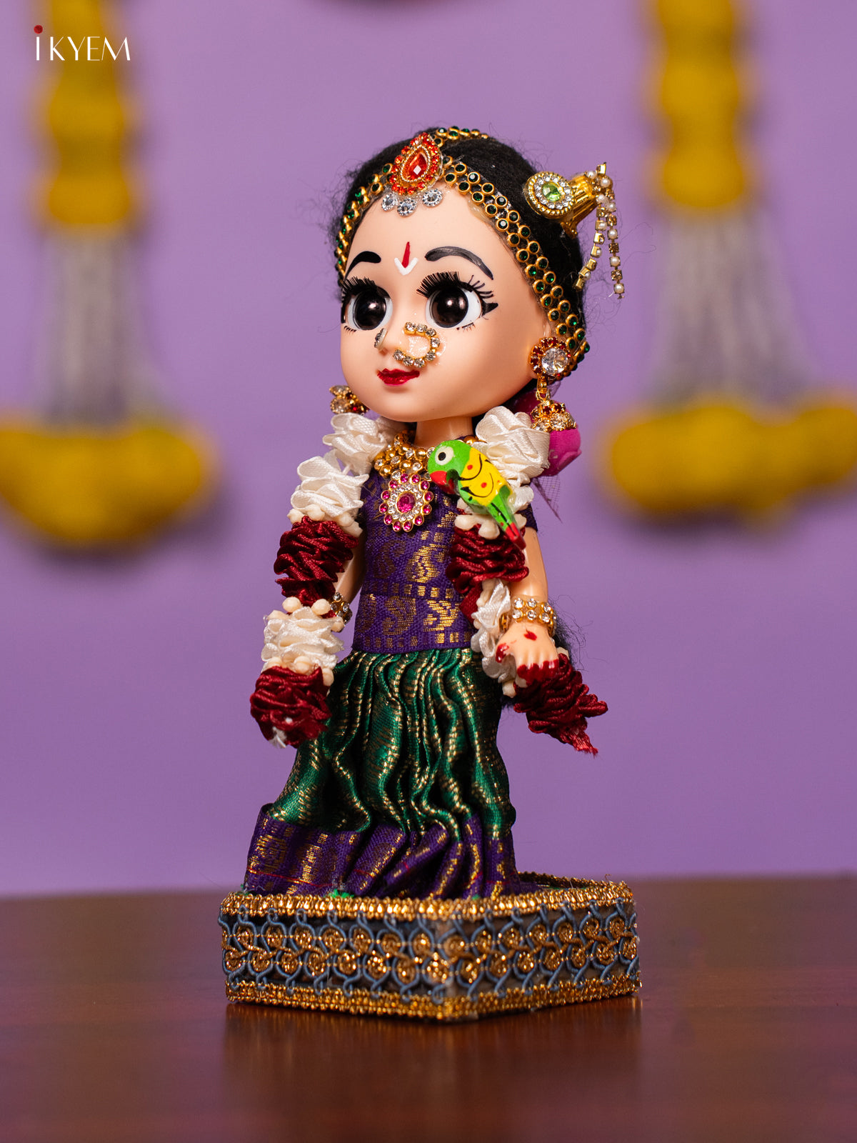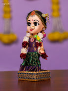 - This intricately dressed Andal doll features vibrant, ornamental embellishments that reflect traditional South Indian craftsmanship.