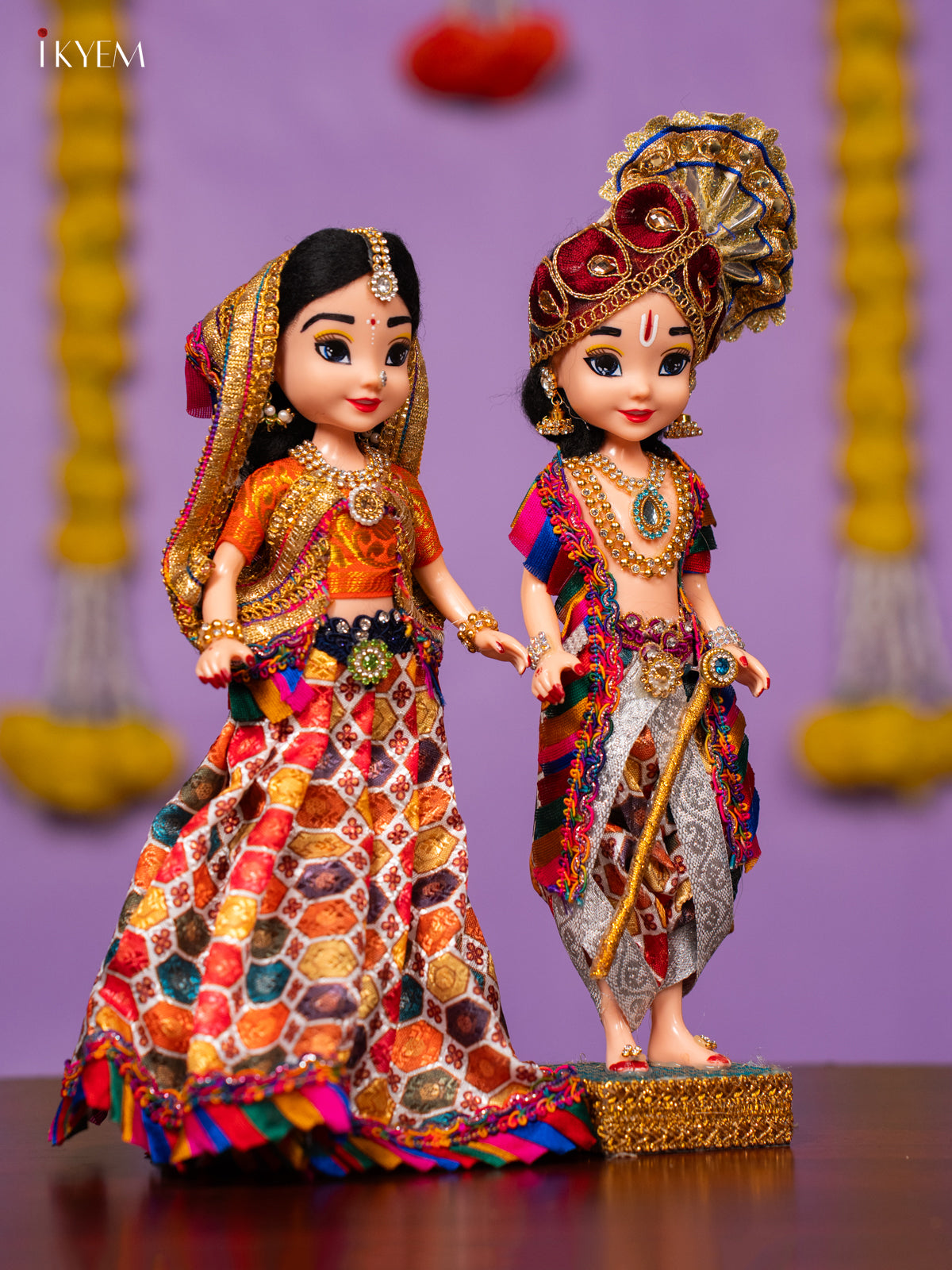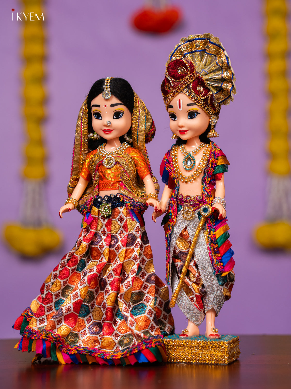 - Elevate your Golu display with this exquisite 10-inch Radha Krishna doll, a timeless representation of divine love and devotion.