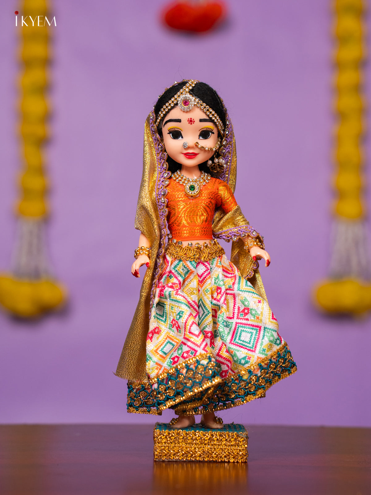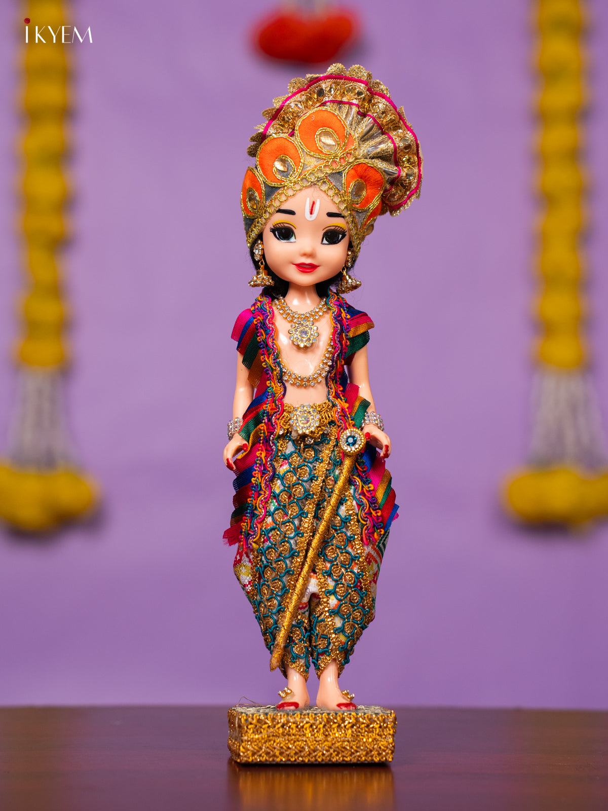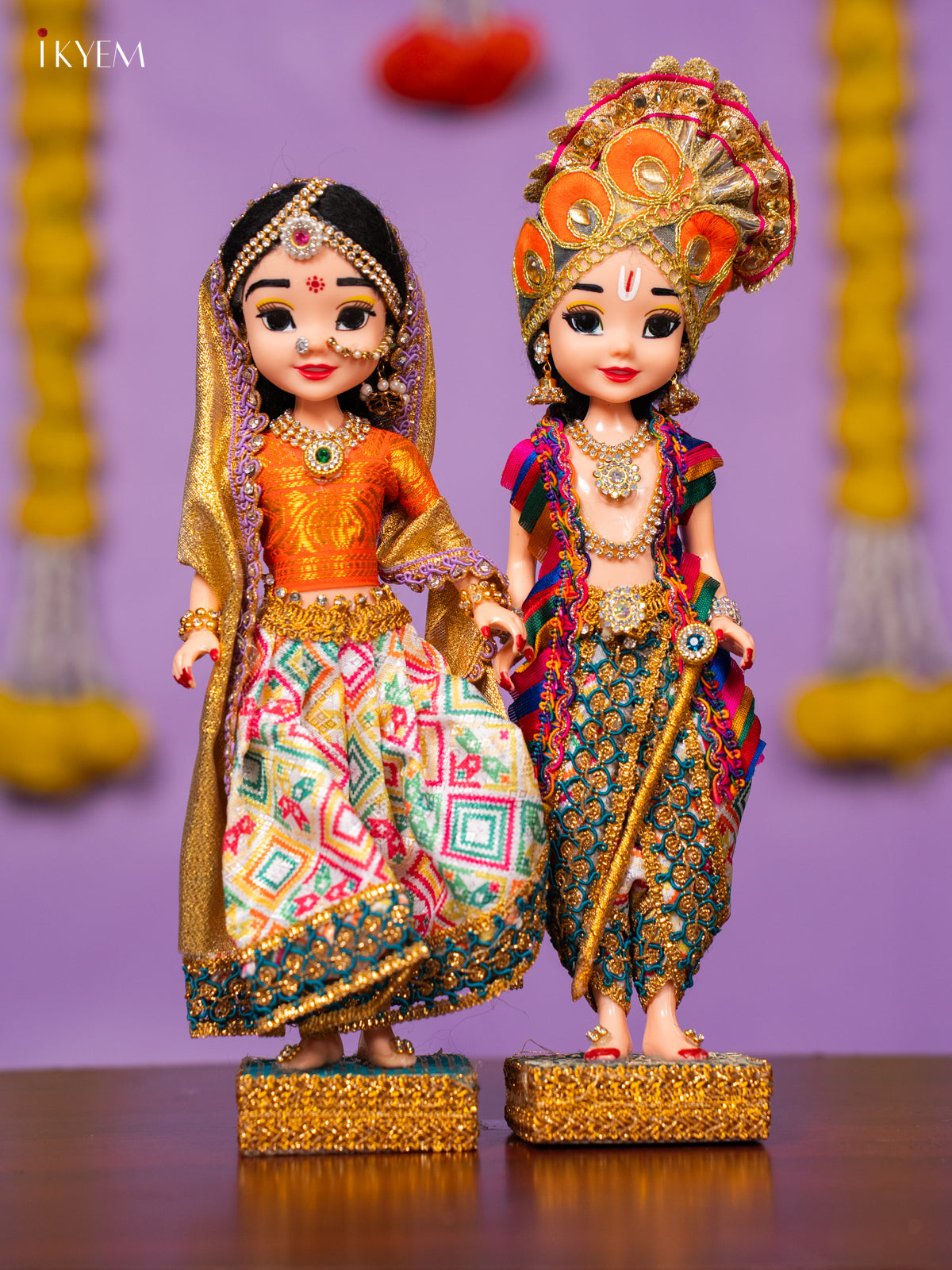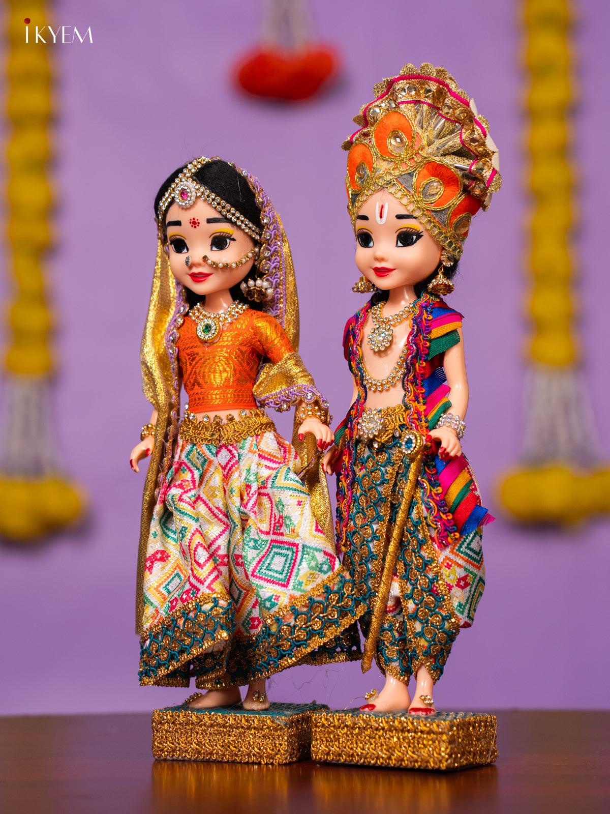 • Elevate your Golu display with this exquisite 10-inch Radha Krishna doll, a timeless representation of divine love and devotion.