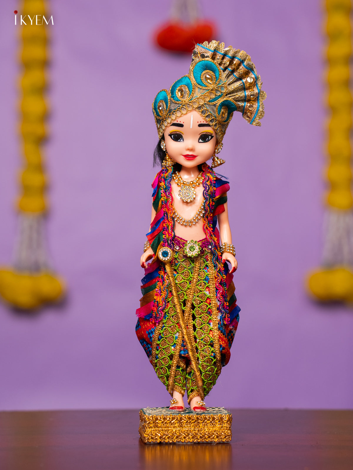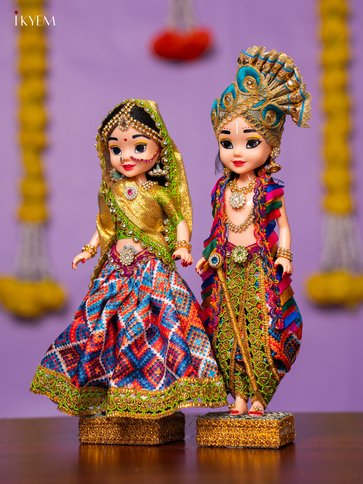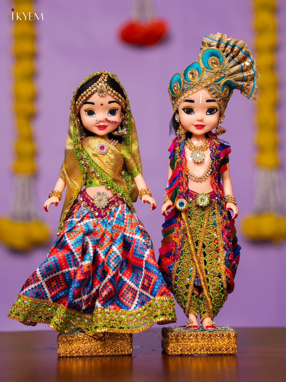 - Elevate your Golu display with this exquisite 10-inch Radha Krishna doll, a timeless representation of divine love and devotion.