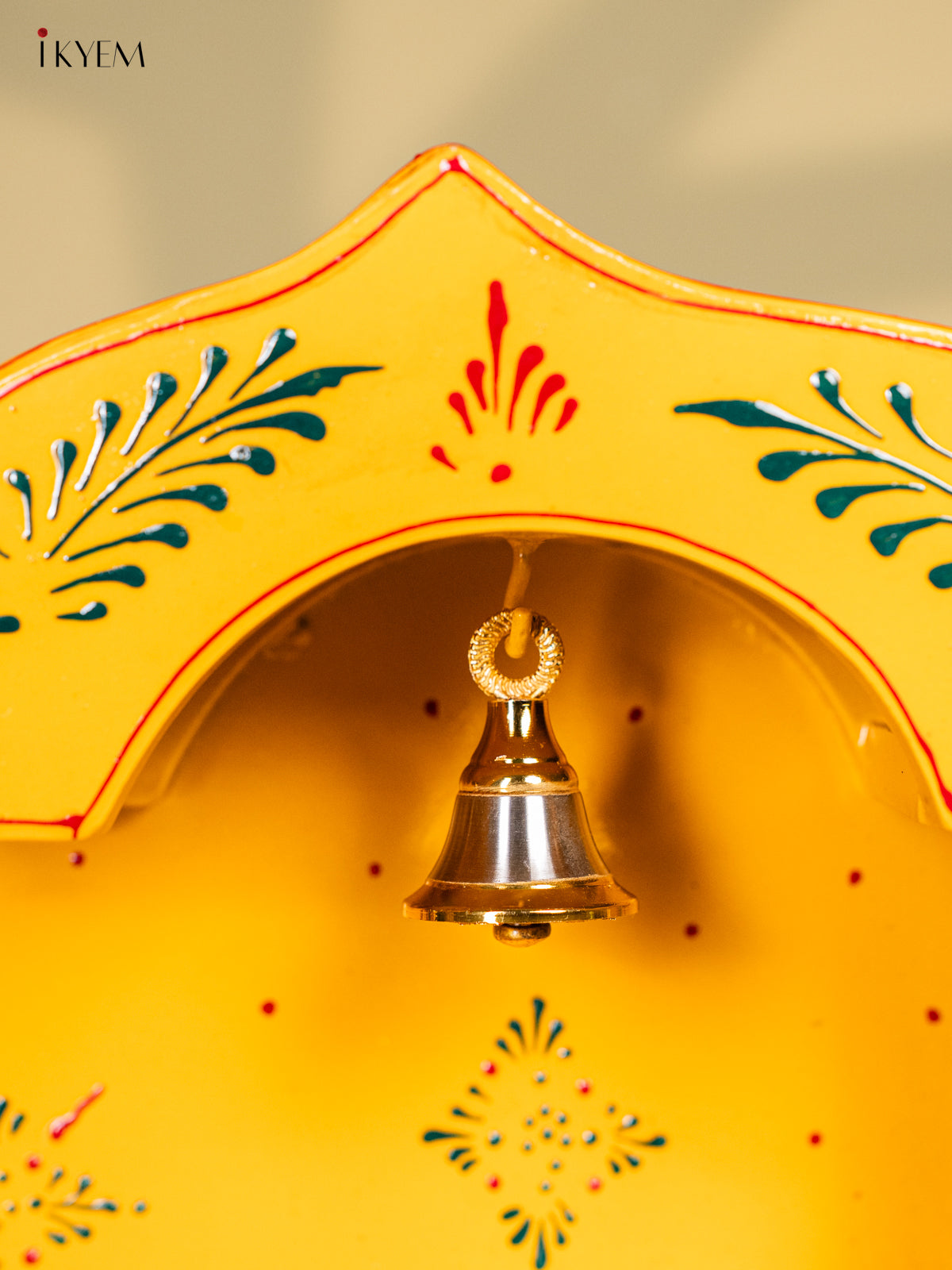 Yellow Hand-Painted Wooden Mandapam - 10 Inch - KK20115
