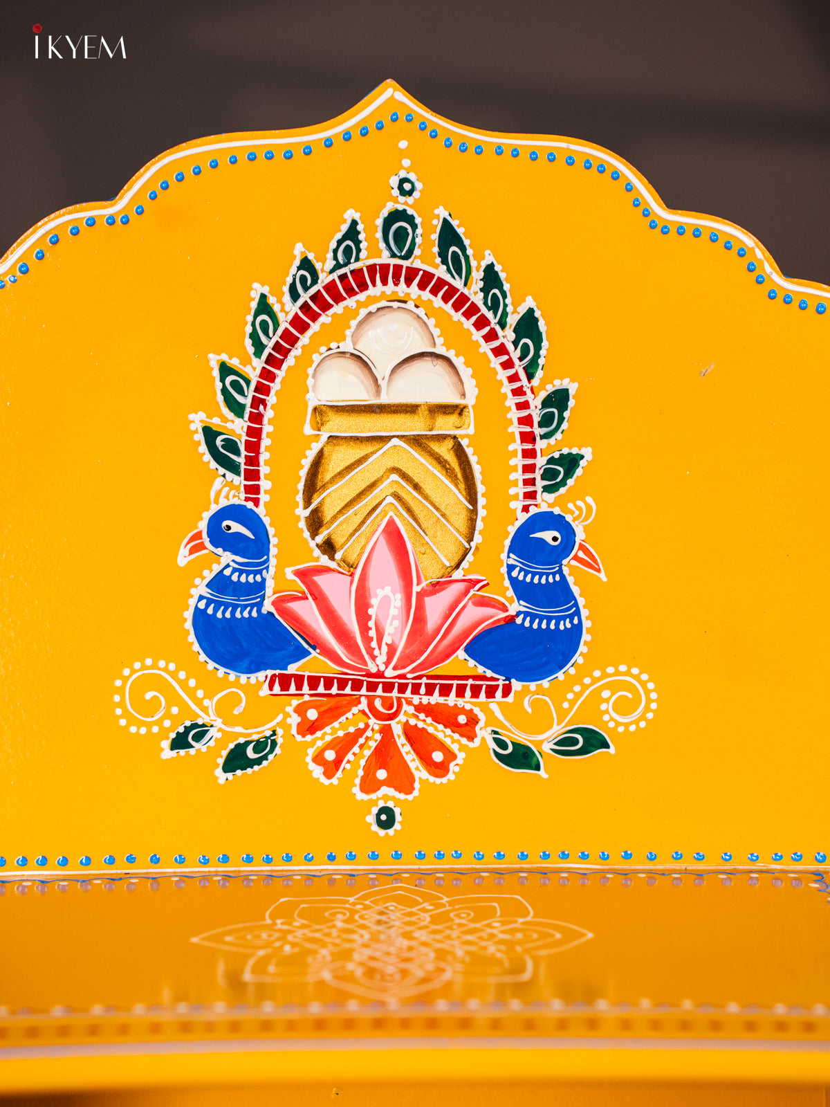 Yellow Hand-Painted Wooden Golu Stand – Peacock Design - 16 Inch - KK24111