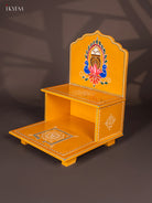 Elevate your Golu display with this exquisite hand-painted wooden stand, featuring an elegant peacock design in vibrant yellow. Measuring 16″ height and 12″ in width and depth, this sturdy artisan piece weighs 2.13 kg and brings a touch of traditional charm to your festive decor.