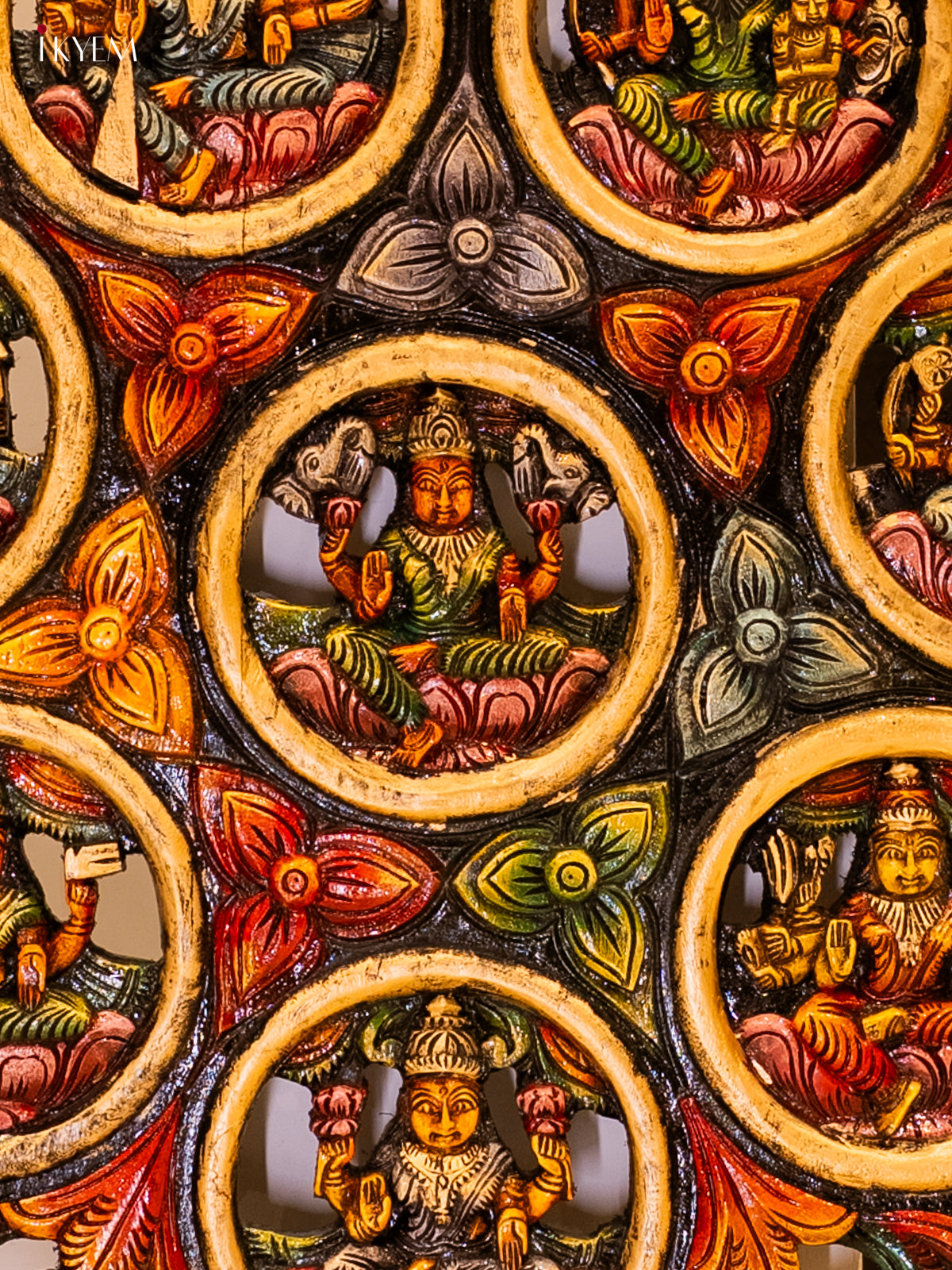 • This wooden panel showcases a hand-painted 30X30 Ashtalakshmi motif, perfect for traditional pooja settings and wall display.