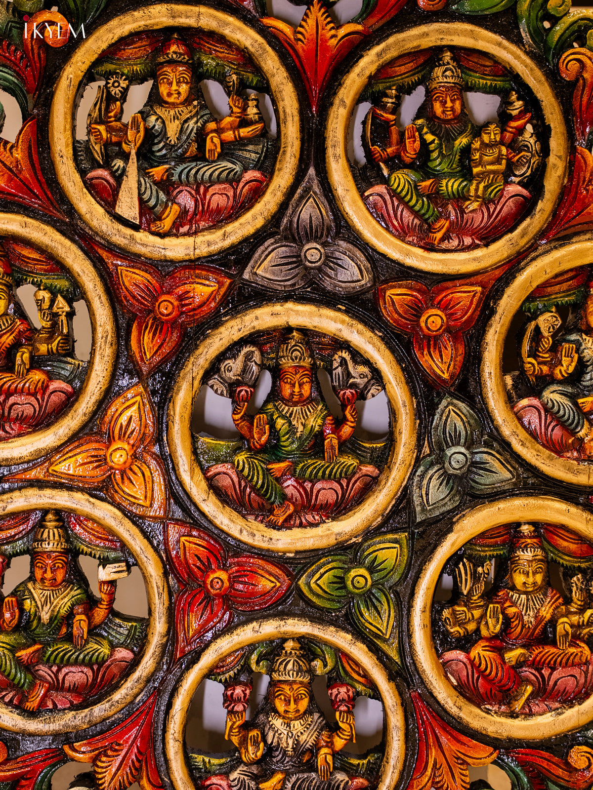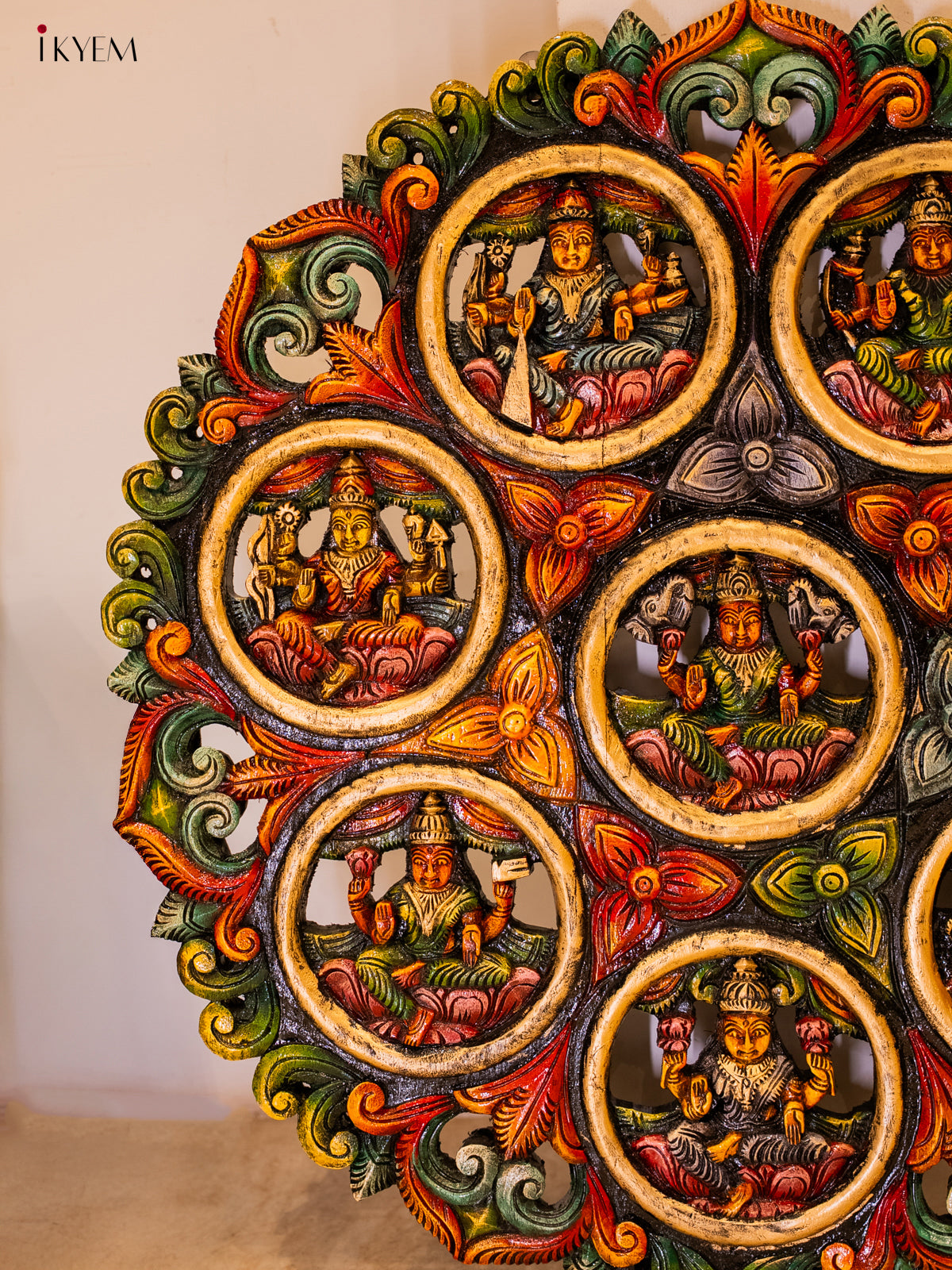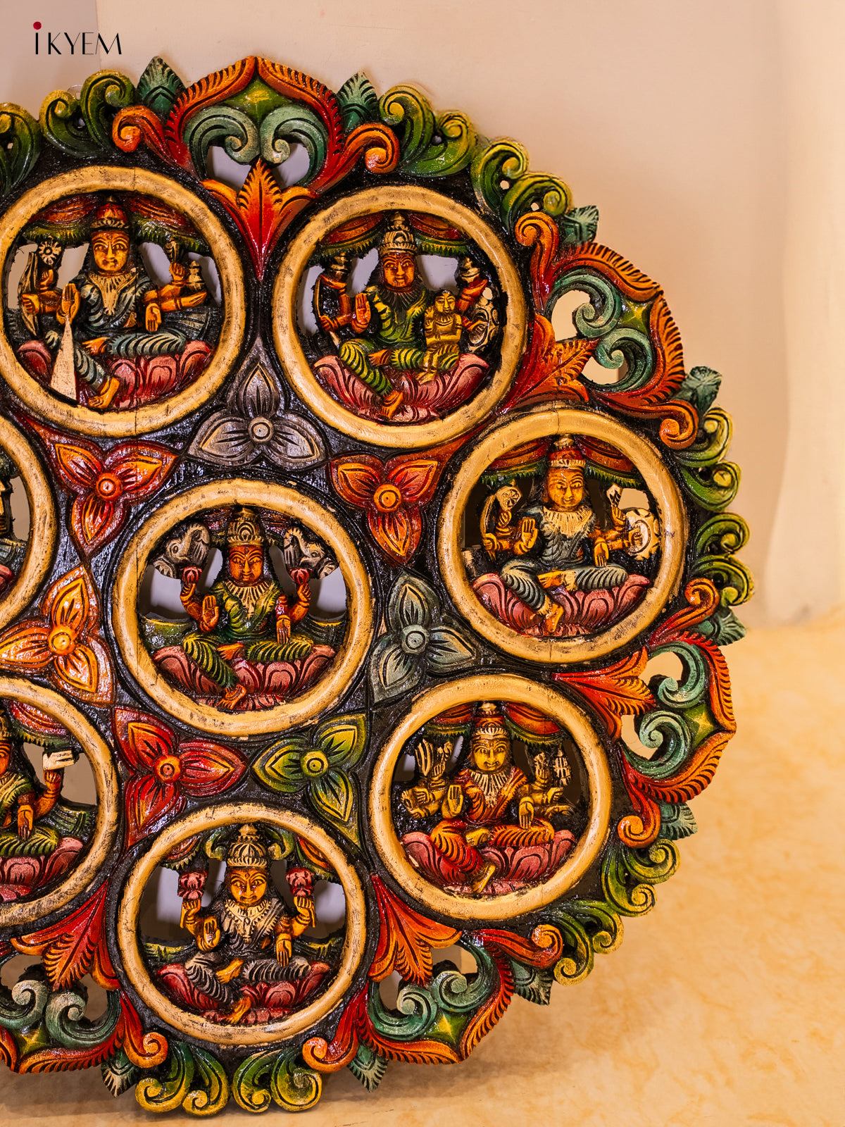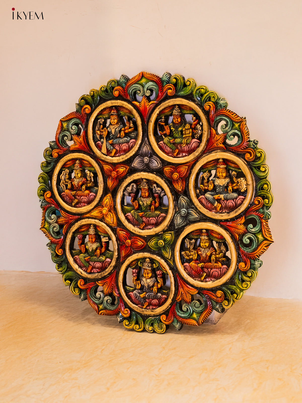 Hand Painted Ashtalakshmi in Circle Shaped Wooden Wall panel - KF19113