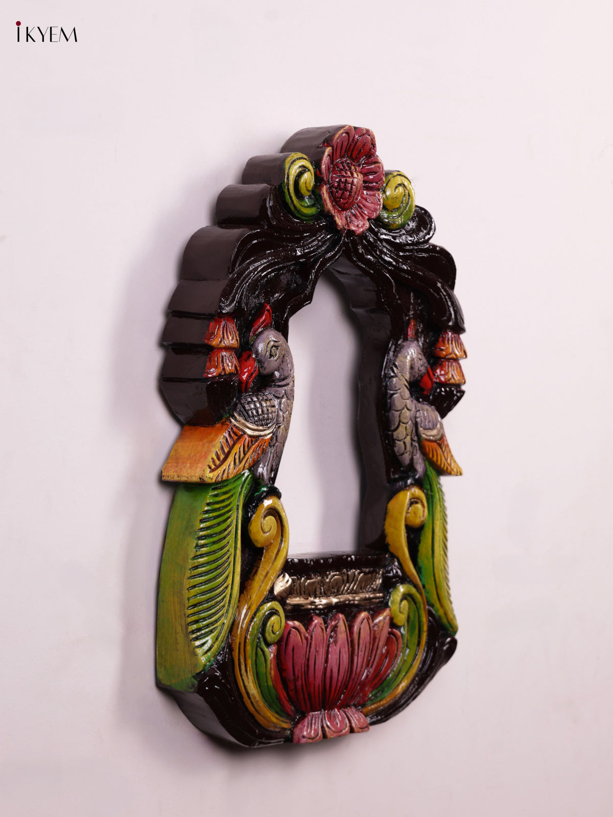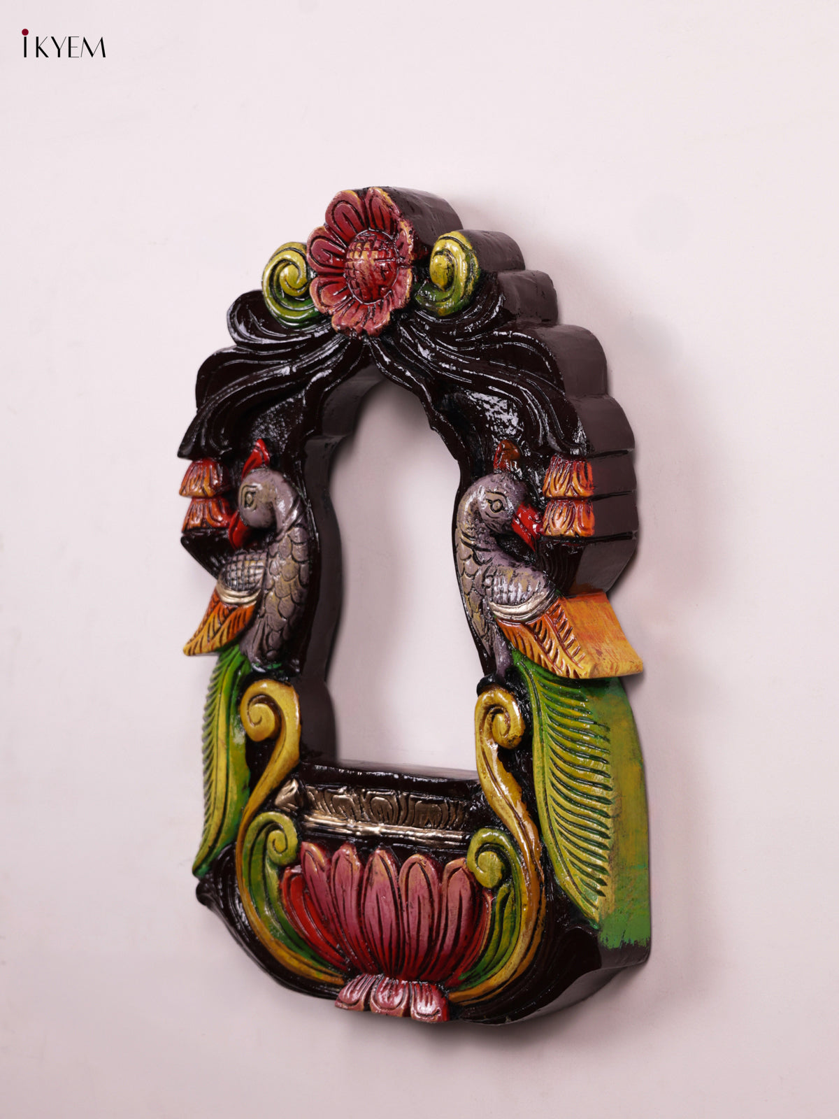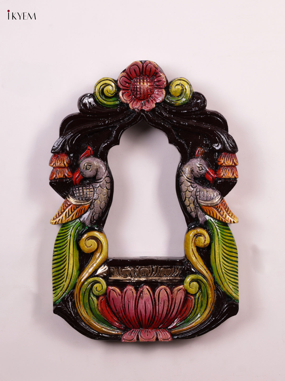 - This Wooden Hand-Carved and Hand-Painted Parrot Mirror / Wall Frame is a traditional decorative wall accessory that blends artistic craftsmanship with cultural symbolism