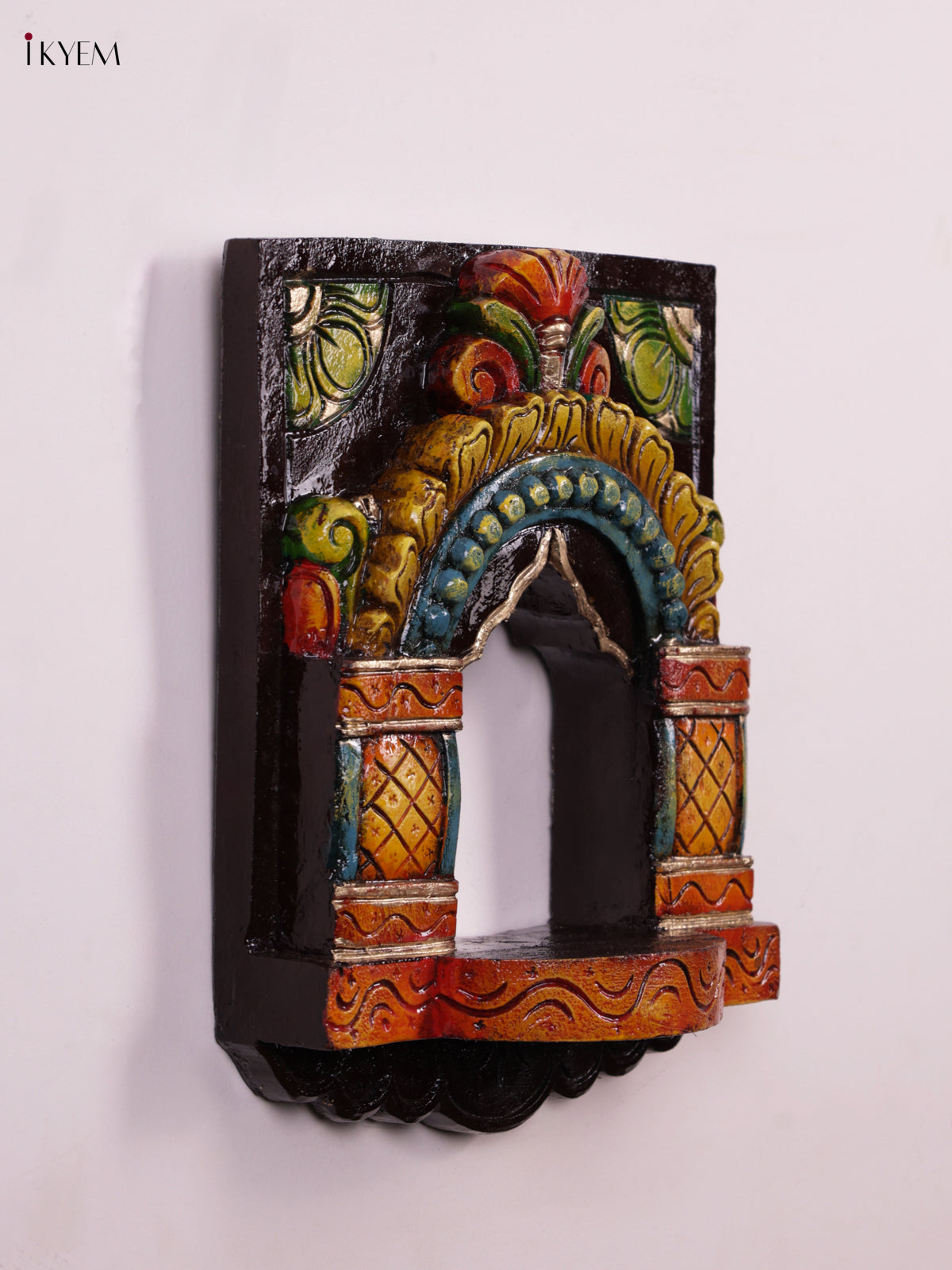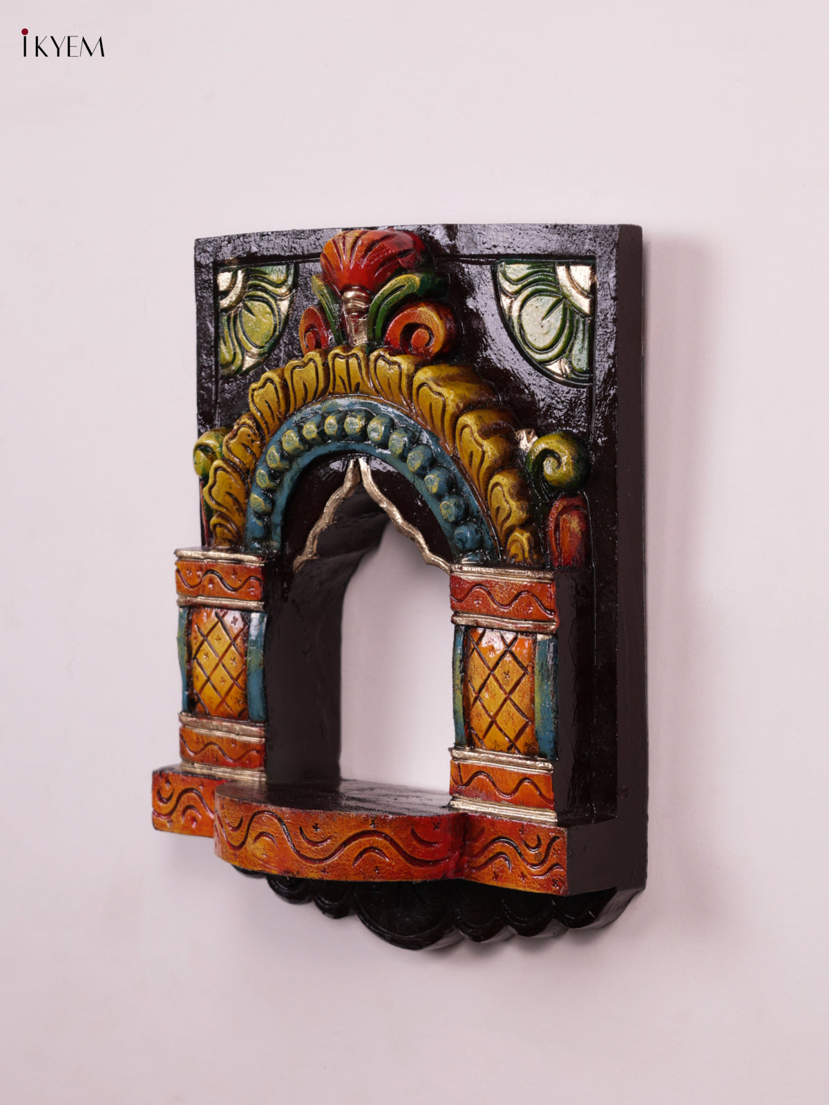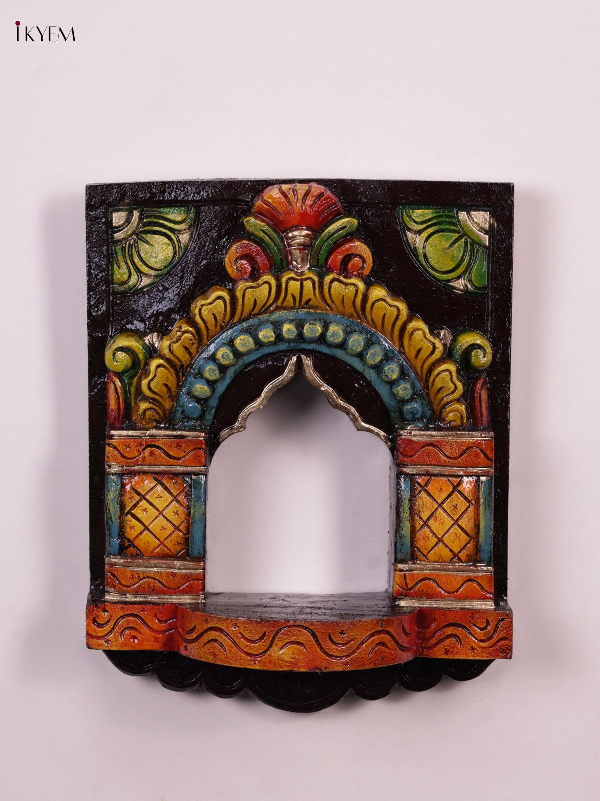 Wooden Hand Carved Painted - Maada Vilakku Wall Shelf - KEB0919