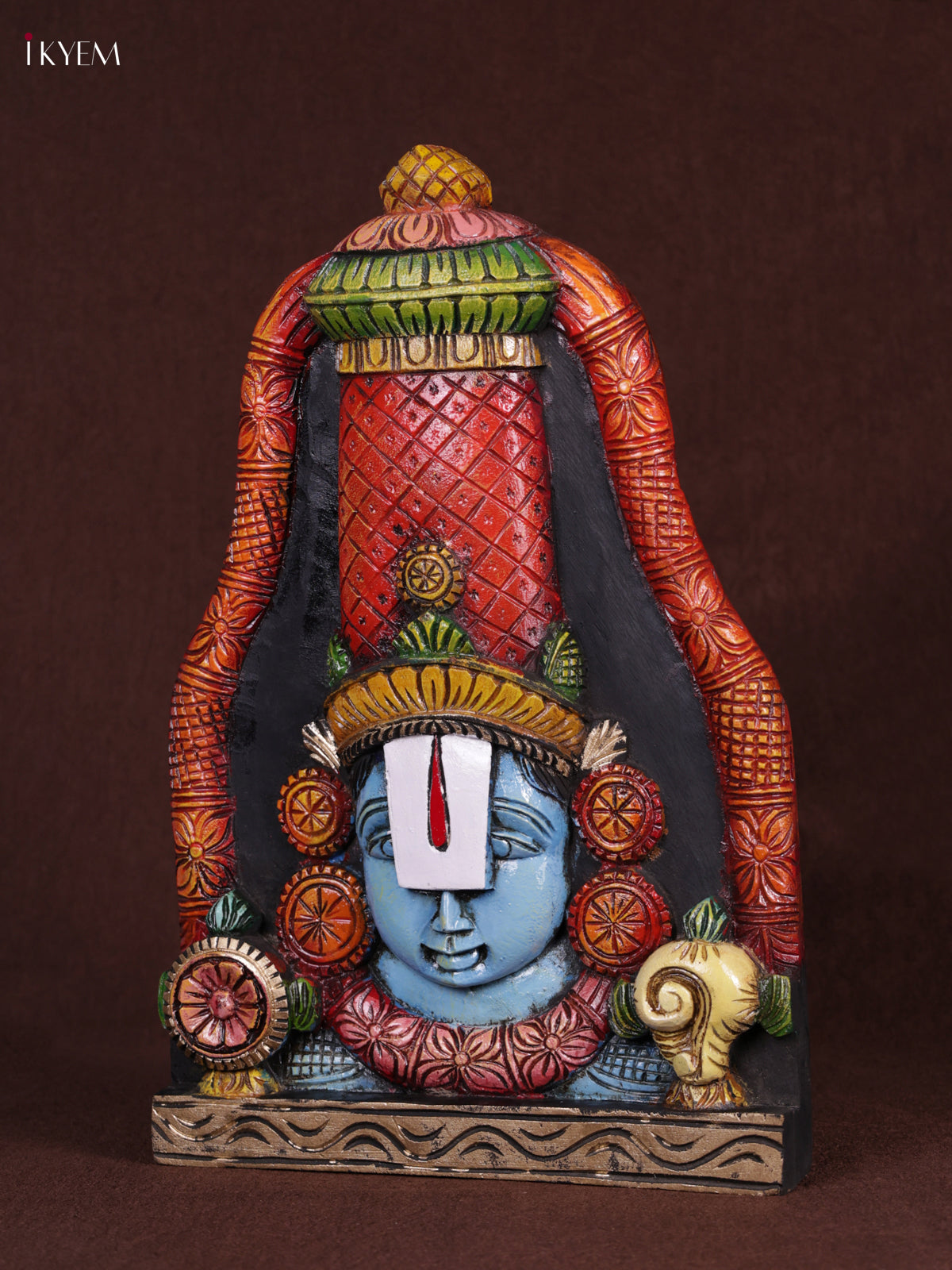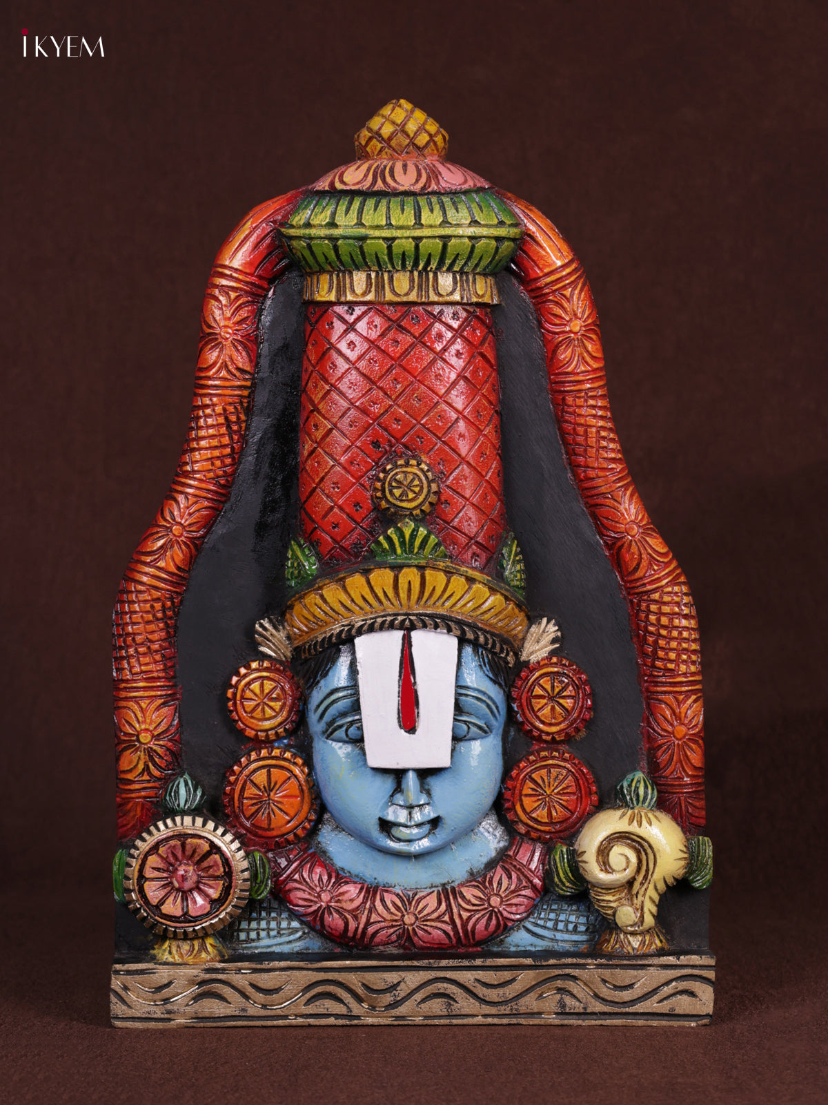 • This Wooden Hand-Carved and Hand-Painted Balaji Panel features Lord Venkateswara (Balaji), a revered form of Lord Vishnu worshipped as the preserver and protector of the universe