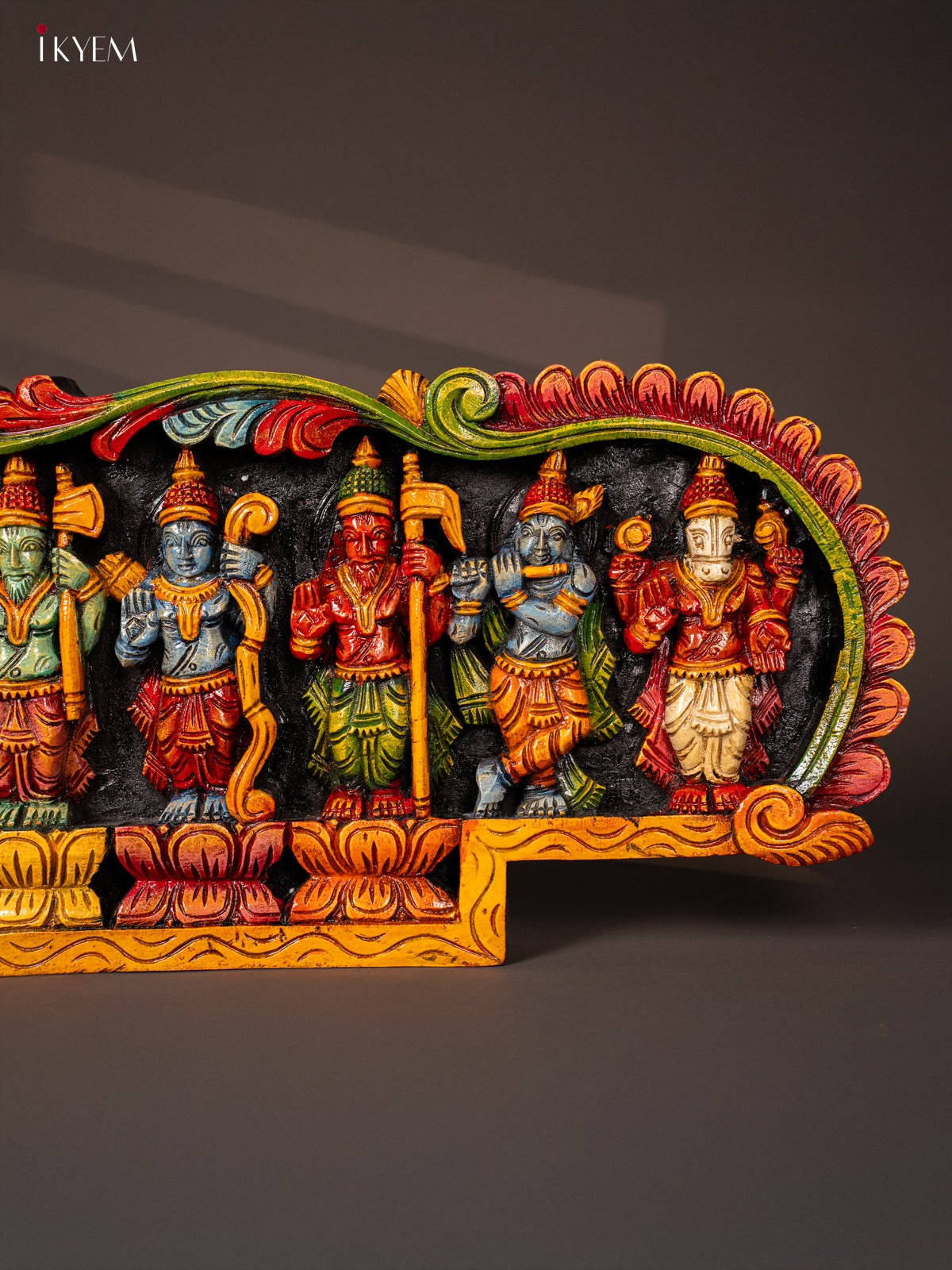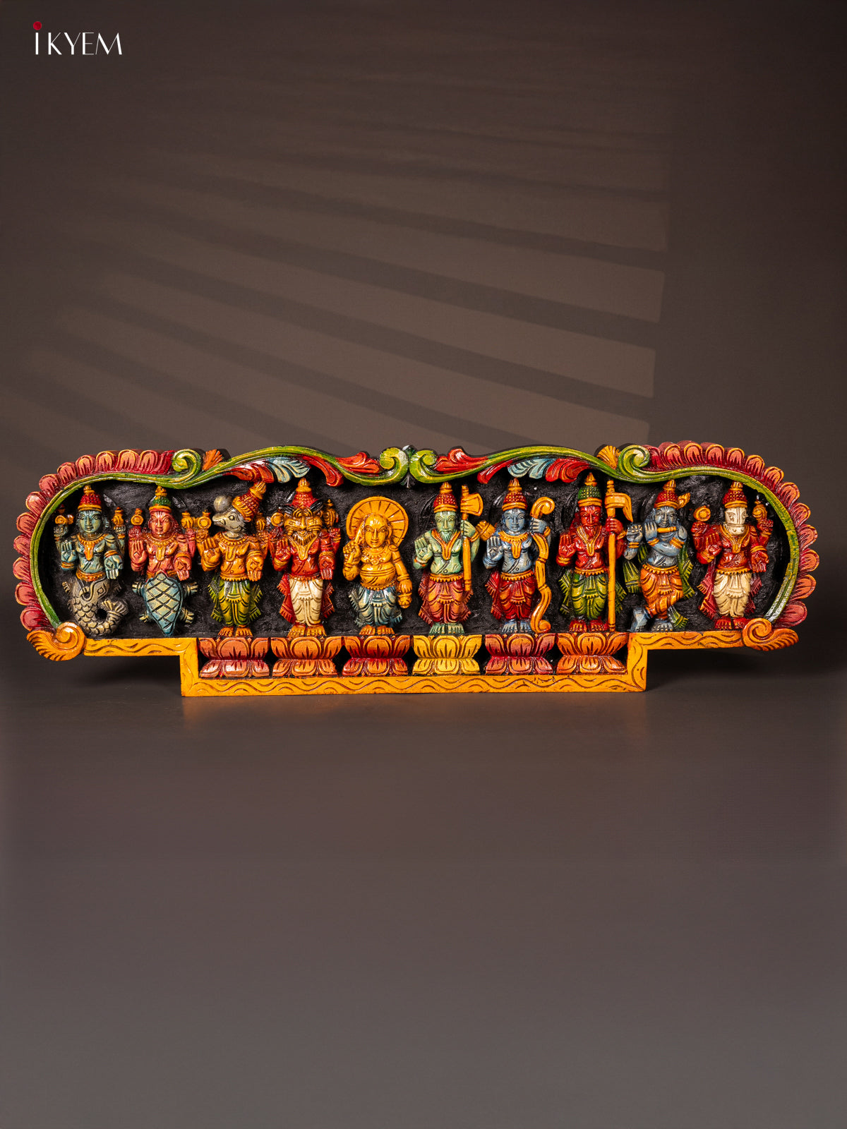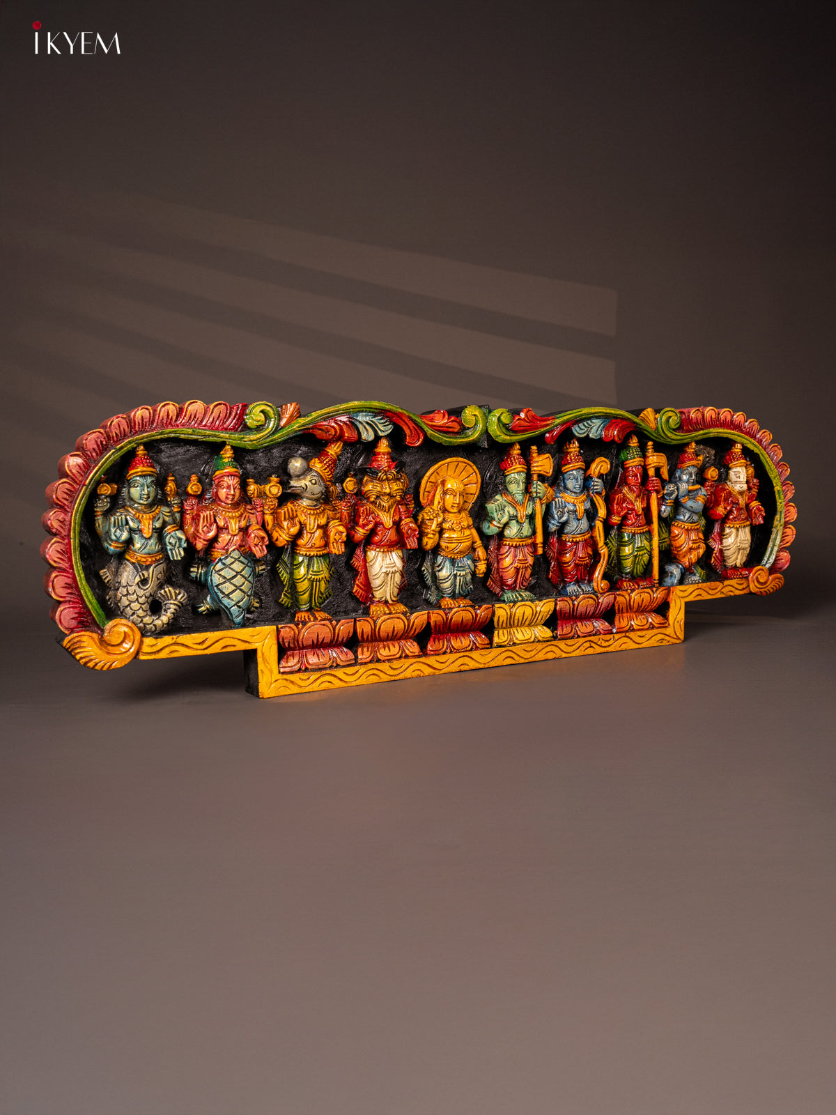 - The Dasavatharam Painted Panel 36 x12 inches showcases the ten divine incarnations of Lord Vishnu, making it a perfect addition to your pooja area or home decor.