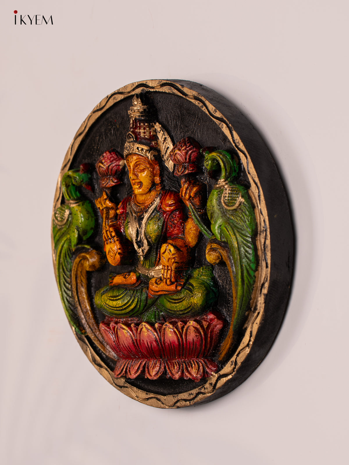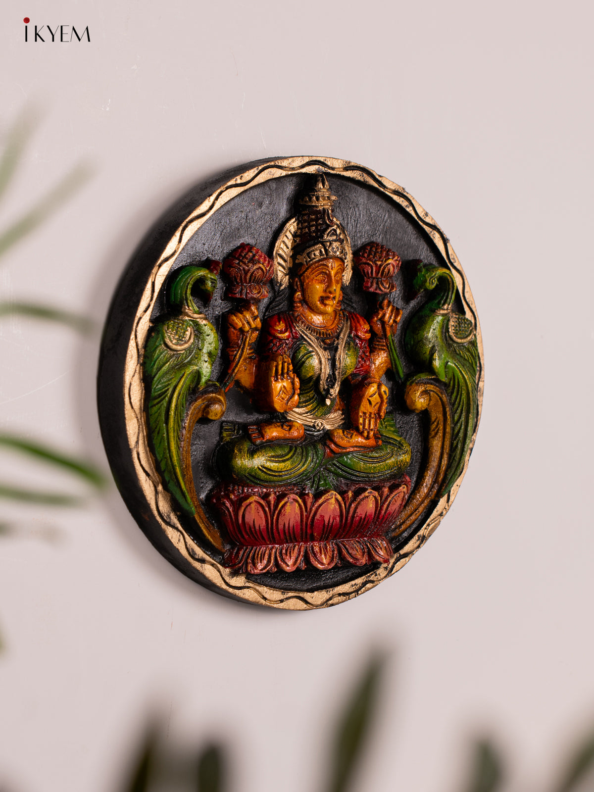 Hand-Painted Wooden Lakshmi Wall Hanging - 12 Inch - KN01125