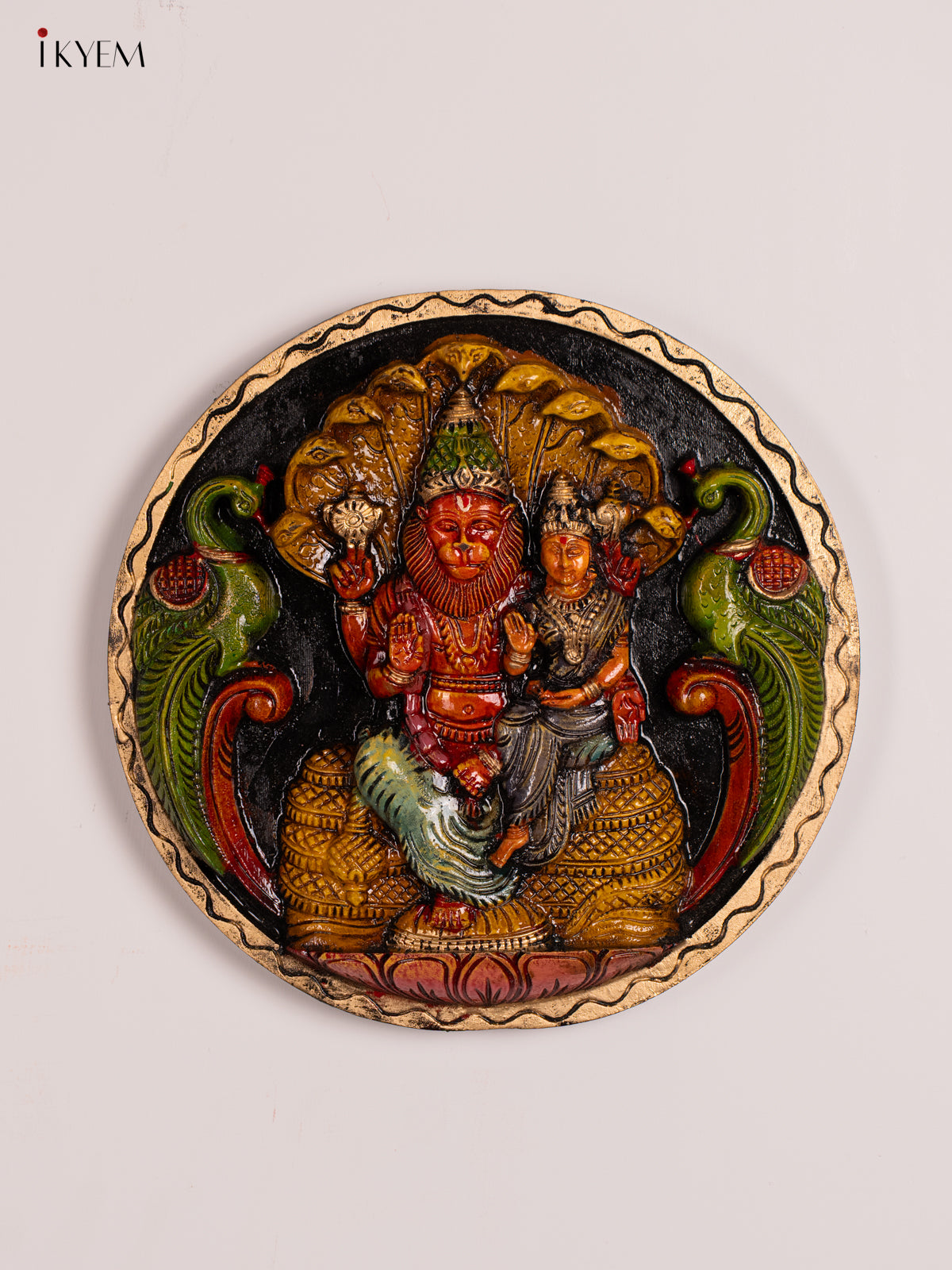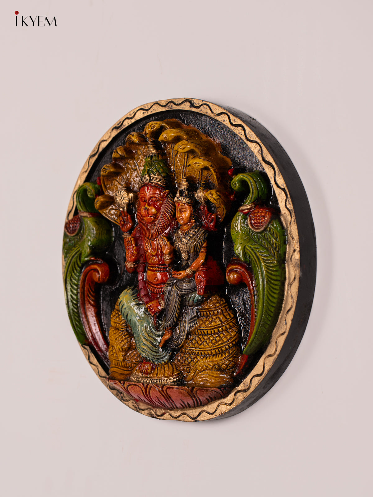 Hand-Painted Wooden Lakshmi Narasimhar Wall Hanging - 12 Inch - KN01128