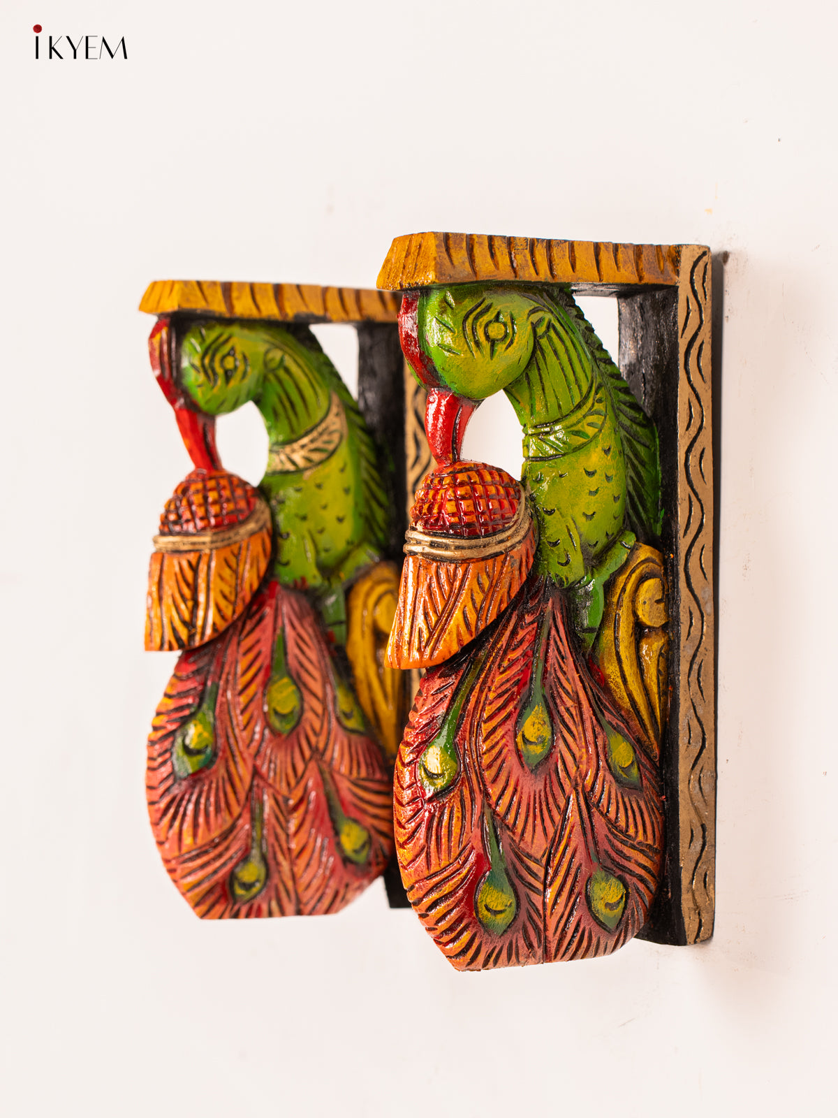 Hand-Painted Wooden Peacock Wall bracket - 12 Inch - KN01163