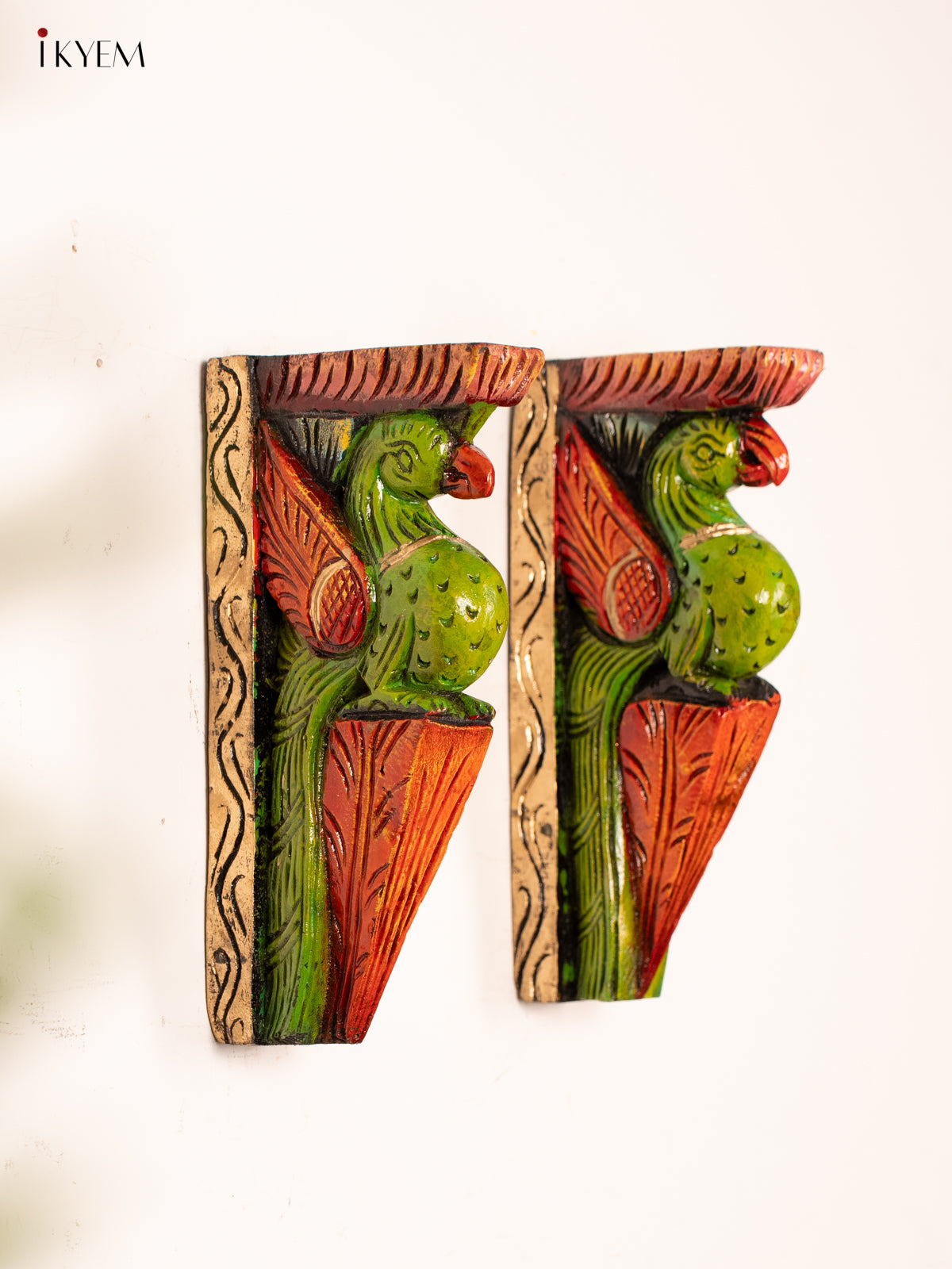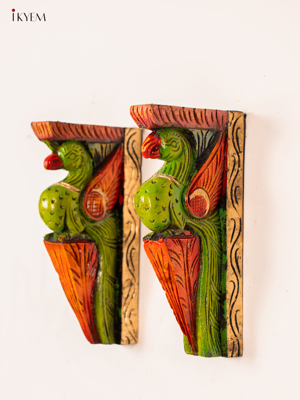 Hand-Painted Wooden Parrot Wall Bracket - 12 Inch - KN01174