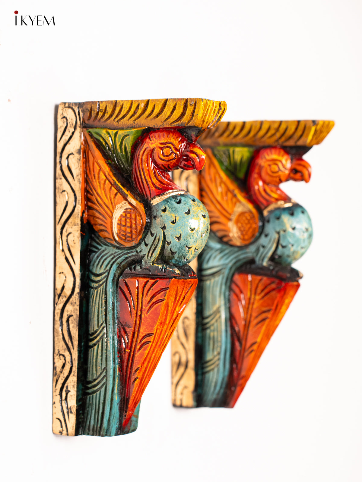 Hand-Painted Wooden Parrot Wall Bracket - 12 Inch - KN01182