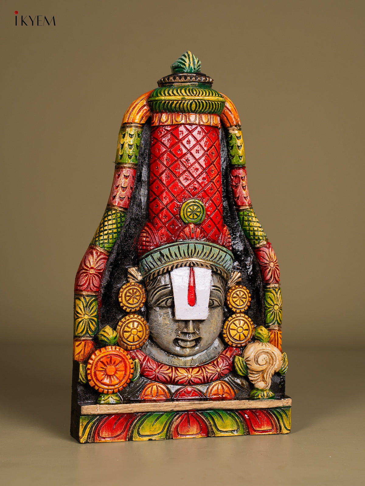 Hand-painted Wooden Balaji Face Wall Hanging - 15 Inch - KN01207