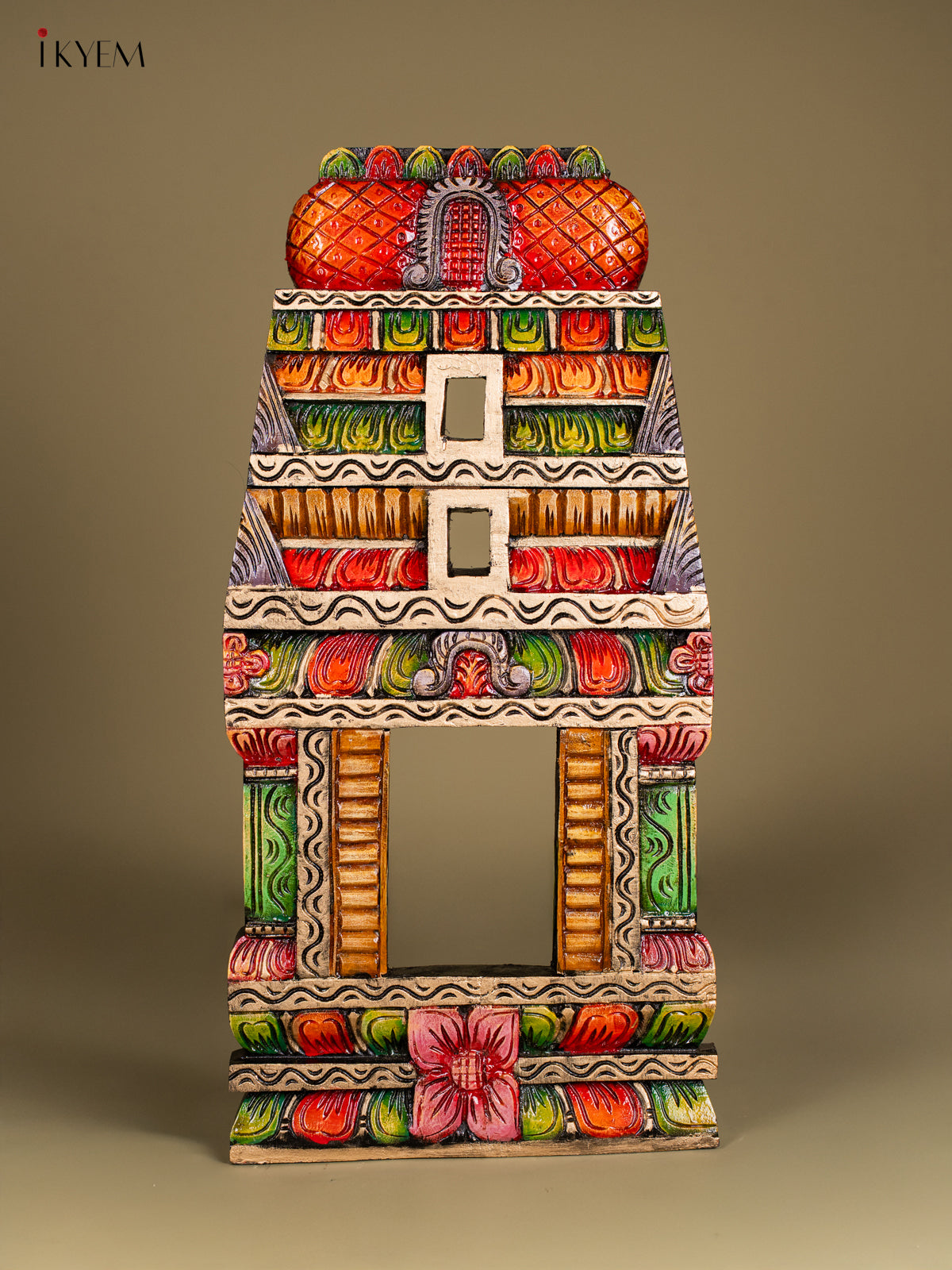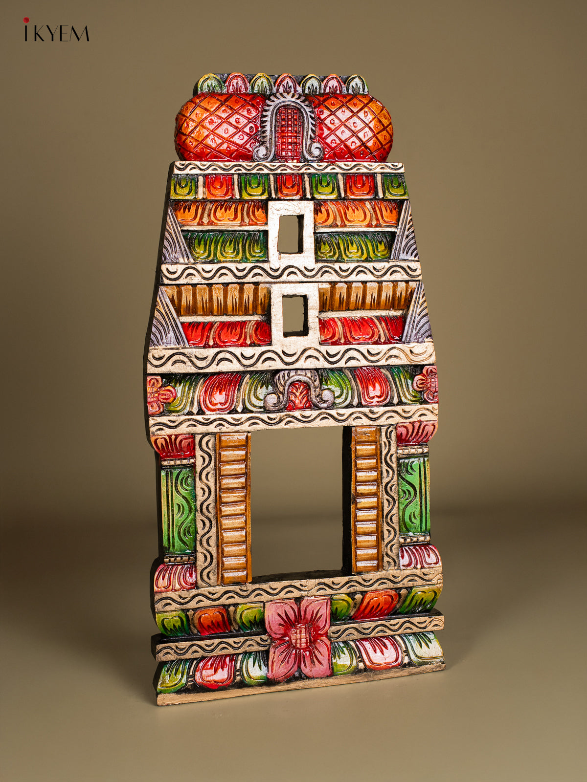 Hand-painted Wooden Carved Kovil Gopuram Panel - 24 Inch - KN01210