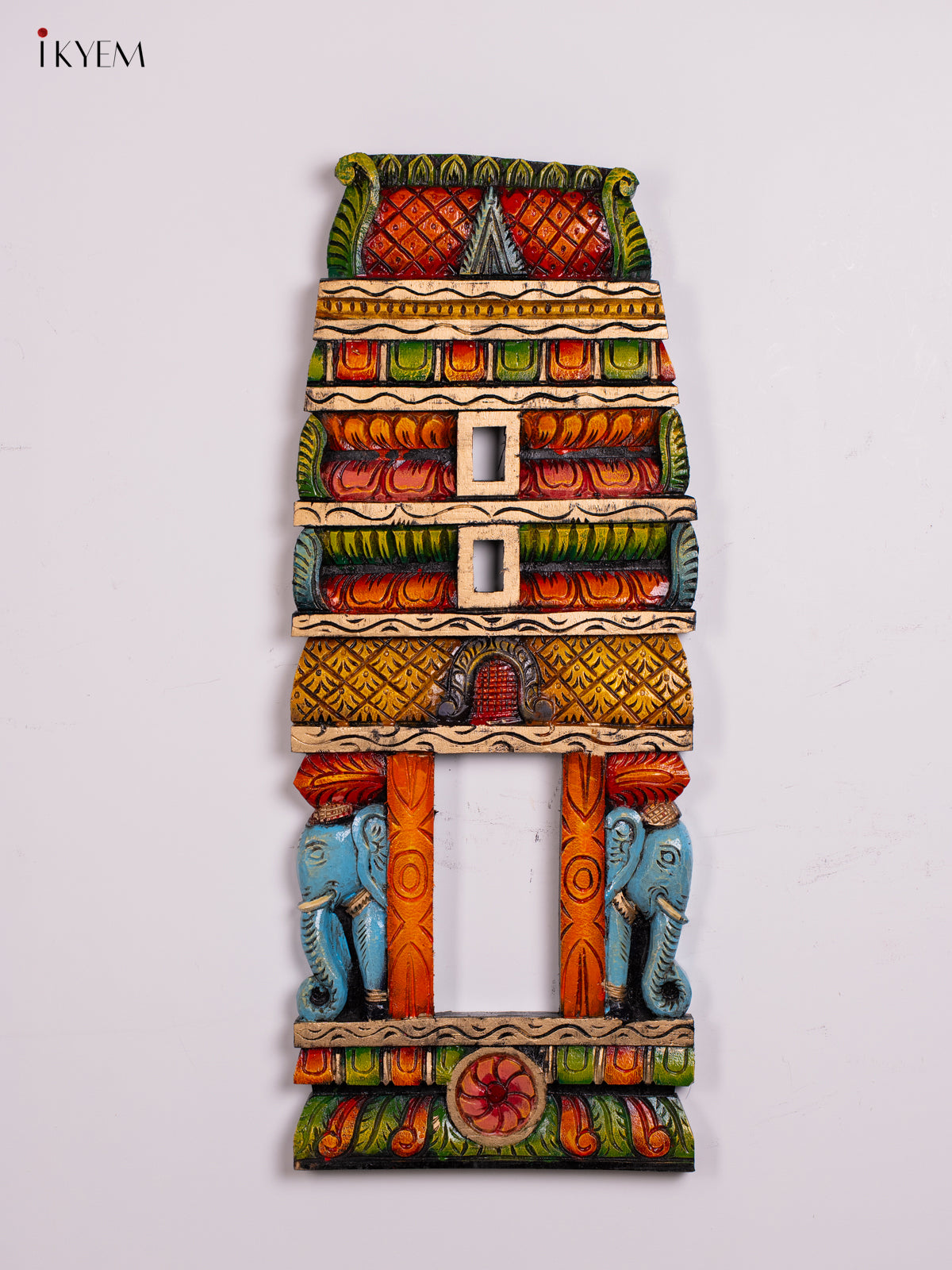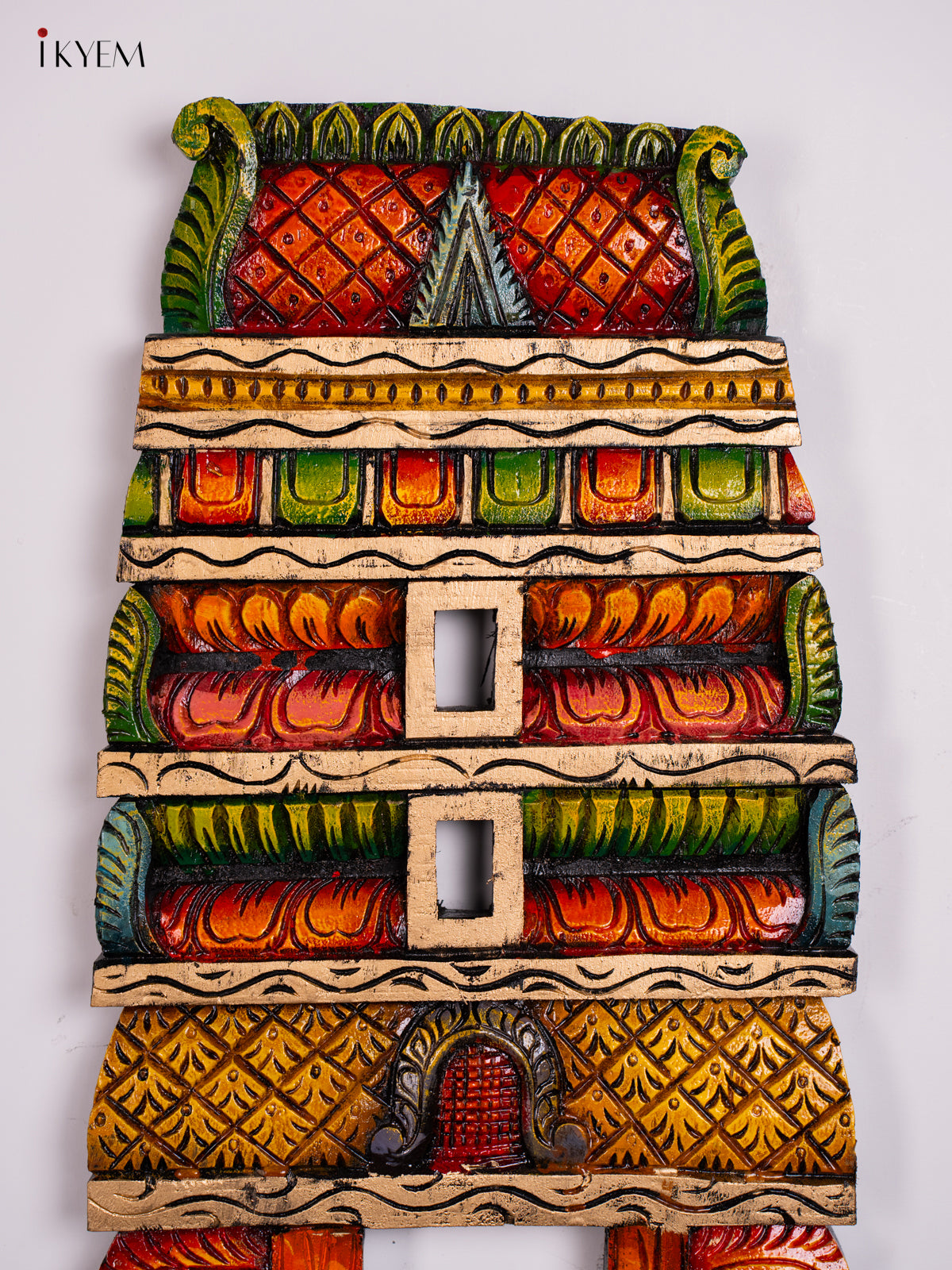 Hand-painted Wooden Carved Kovil Gopuram Panel - 29.5 Inch - KN01214
