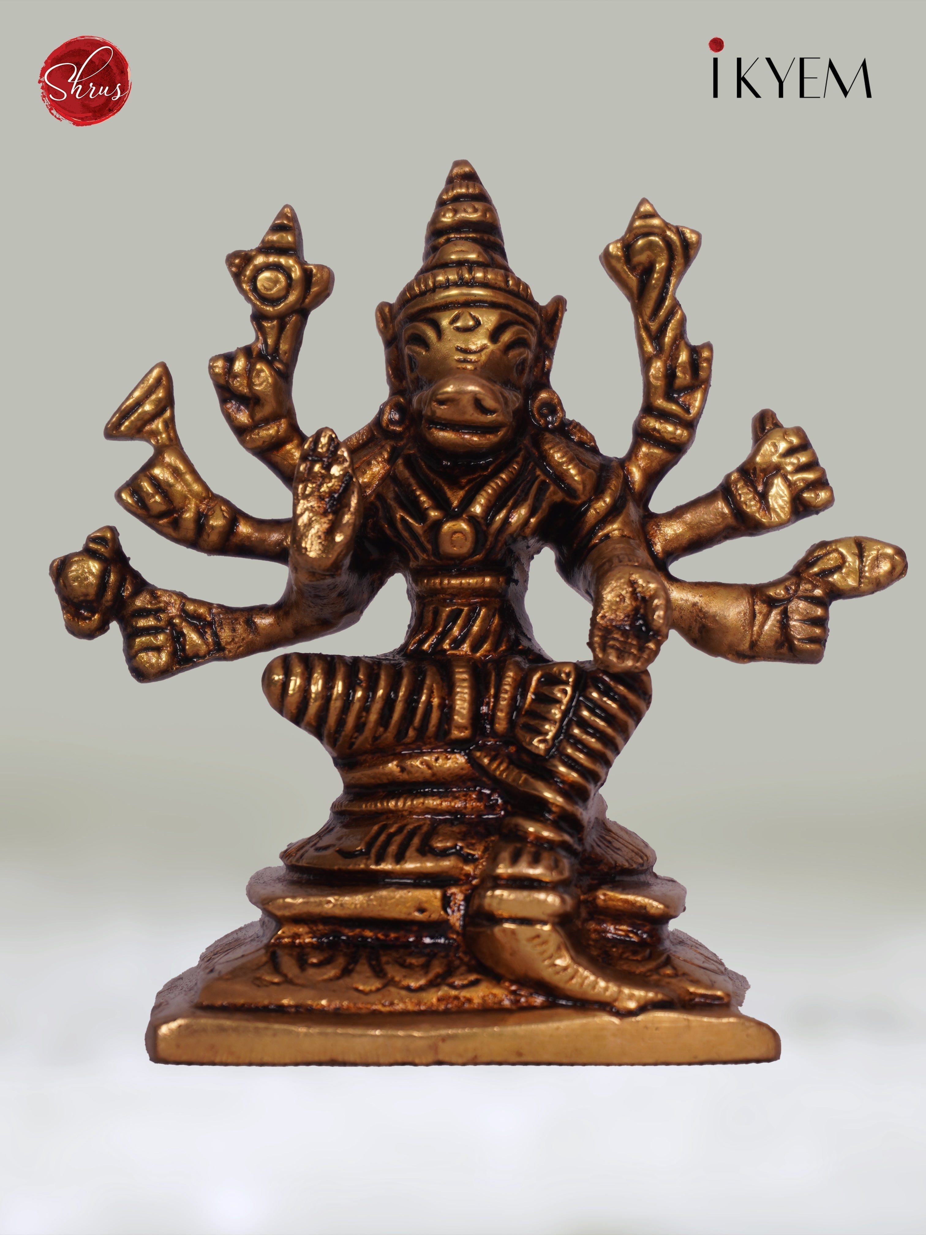 Introducing our Copper Handcrafted sitting Varahi statue, an ideal gift for any occasion. The statue is made by skilled artisans with intricate attention to detail. The statue is made of pure copper, giving it a unique and elegant appearance. Varahi Lakshmi is depicted in a seated posture, holding traditional attributes of wealth and prosperity. She is considered as one of the powerful goddesses in Hinduism and is known for her ability to provide wealth and prosperity. Perfect for adding a touch of spirituality and beauty to your home or office and also for gifting it to your loved ones.