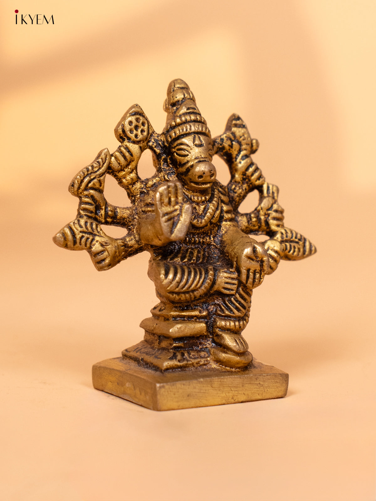 Introducing our Copper Handcrafted standing Varahi Lakshmi statue, an ideal gift for any occasion. The statue is made by skilled artisans with intricate attention to detail. The statue is made of pure copper, giving it a unique and elegant appearance. Varahi Lakshmi is depicted in a sitting posture, holding traditional attributes of wealth and prosperity. She is considered as one of the powerful goddesses in Hinduism and is known for her ability to provide wealth and prosperity. Perfect for adding a touch of spirituality and beauty to your home or office and also for gifting it to your loved ones.