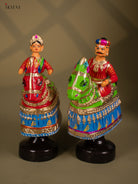Thanjavur Dancing Doll - Poikalkuthirai Couples - 14.5 Inch - Green & Red - KF26122