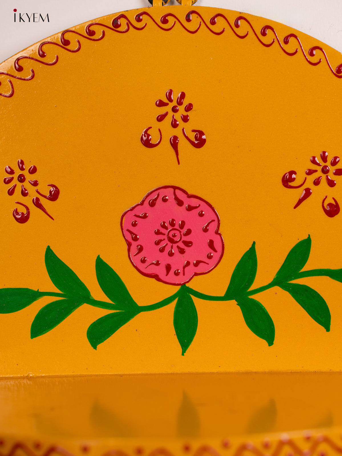• This Wooden Hand Painted Pooja Wall Shelf in yellow offers a blend of traditional design and practical function.