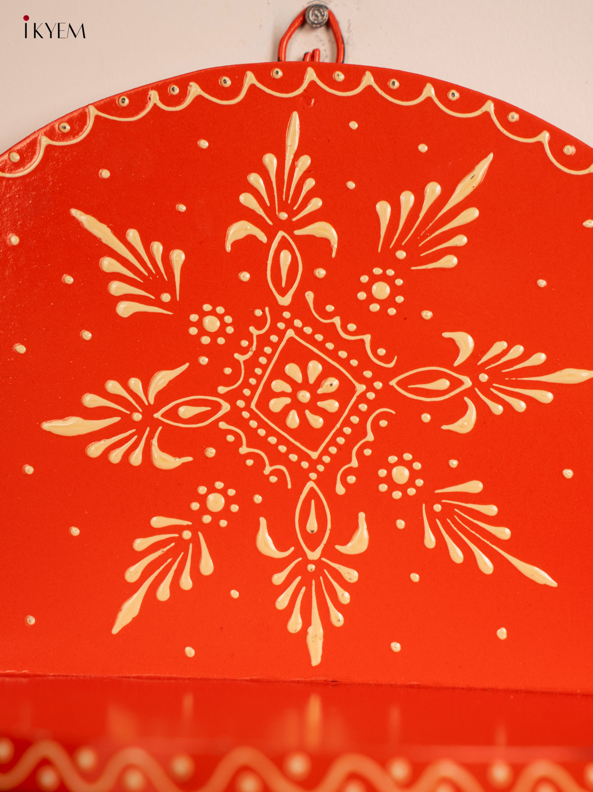 • This Wooden Hand Painted Pooja Wall Shelf in orange offers a blend of traditional design and practical function.