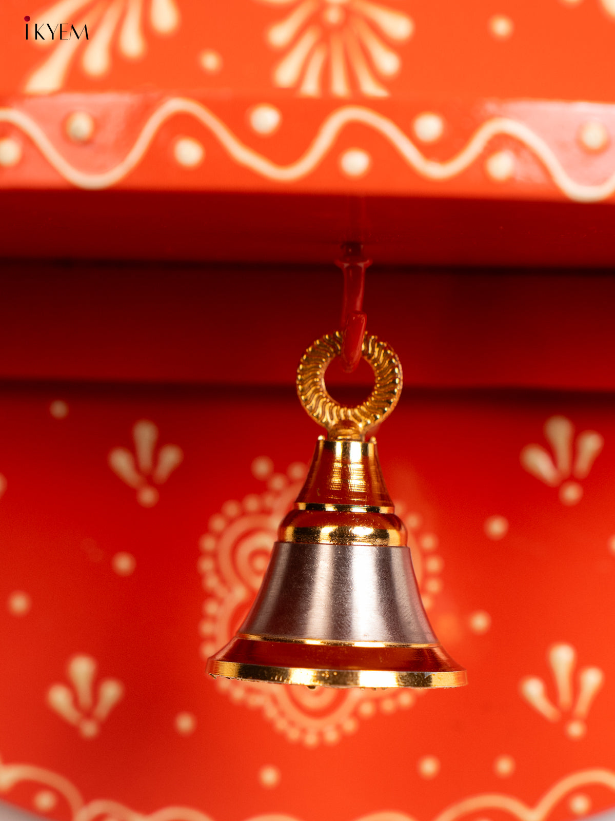 • Handcrafted with attention to detail, it features a hanging bell and provides an elegant space to display your puja items.