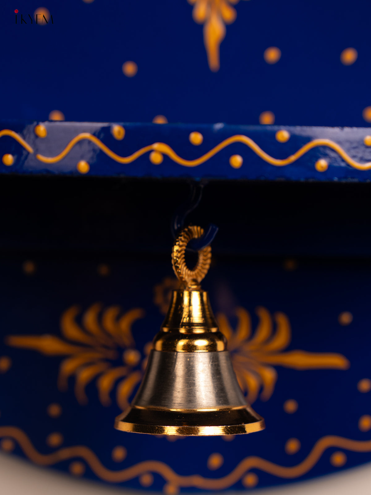 Wooden Painted Pooja Wall Self/Jharokha with Bell - Blue - KH12124