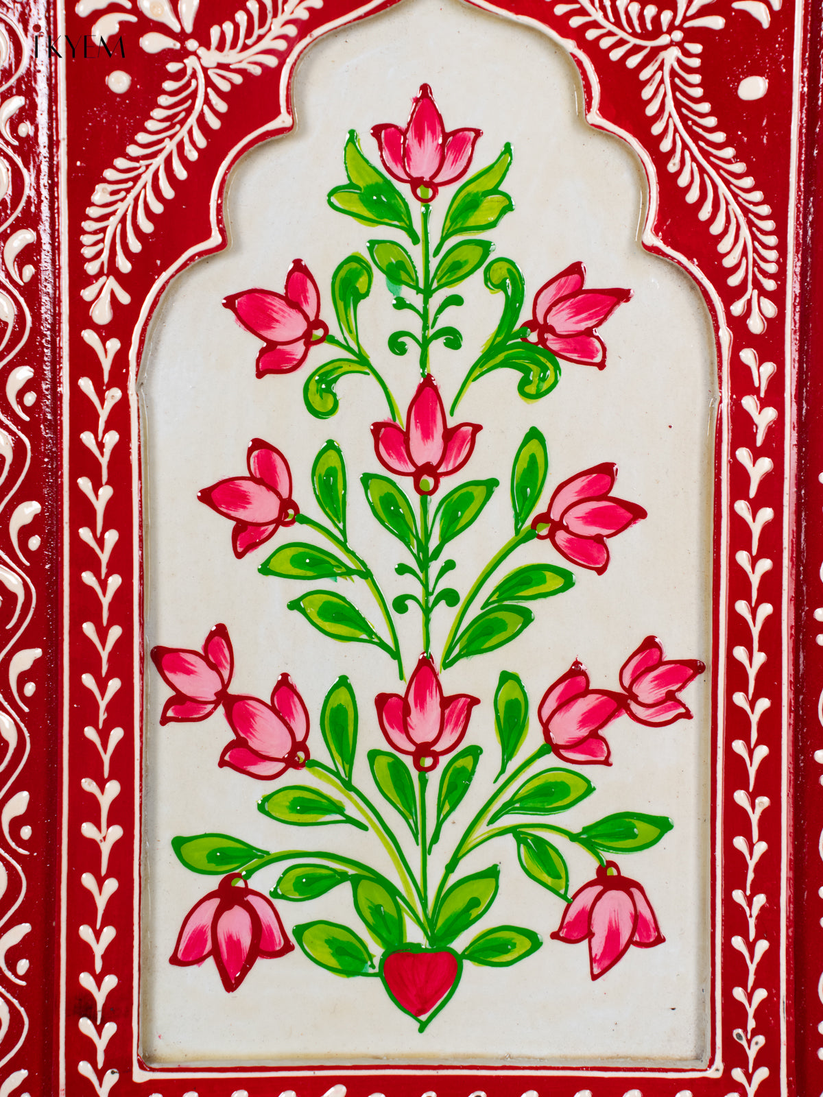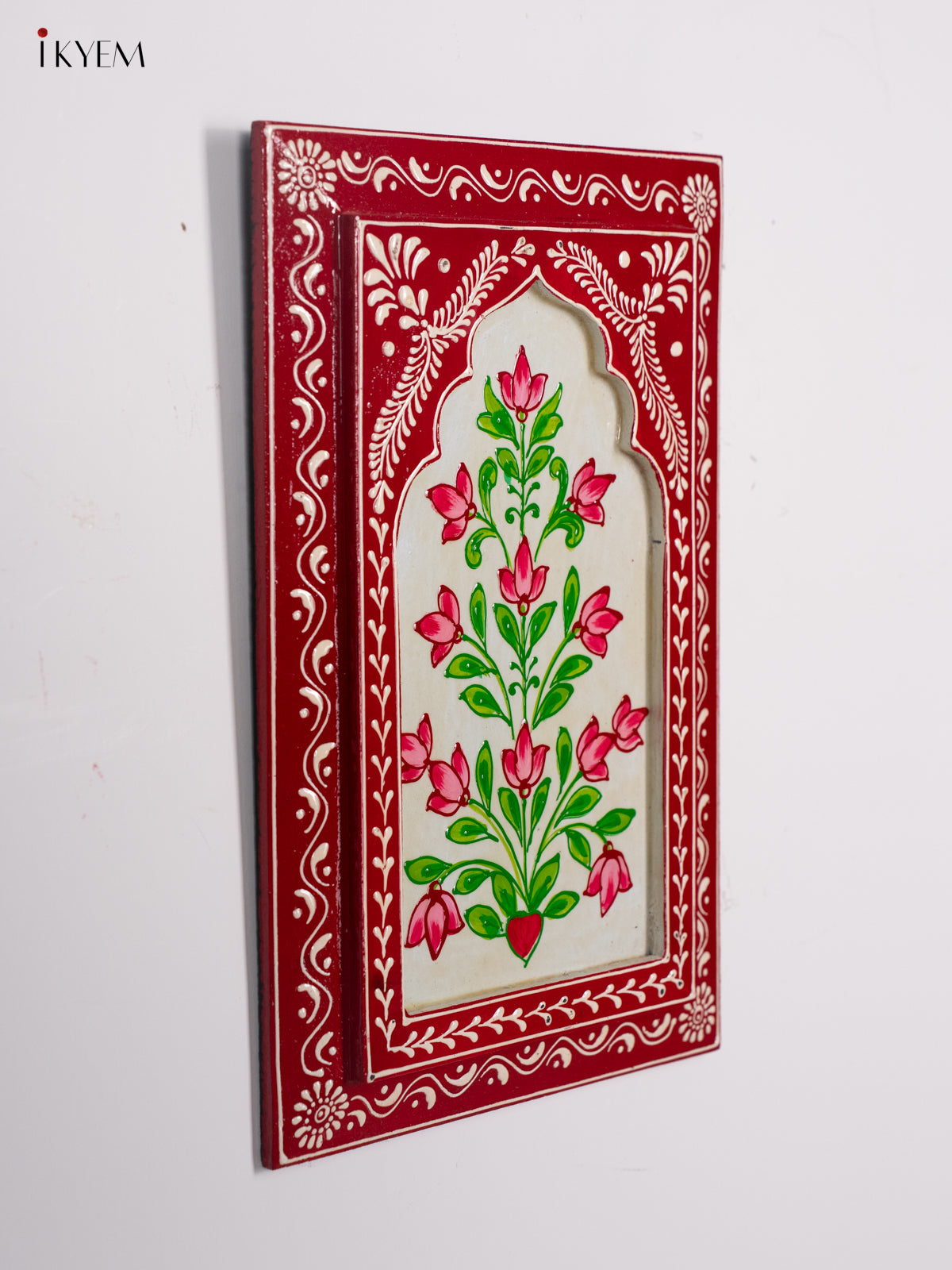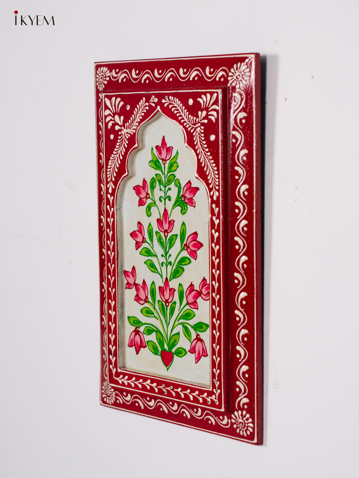 Wooden Hand Painted Wall Frame - Red with White - 12 inches - KI24140