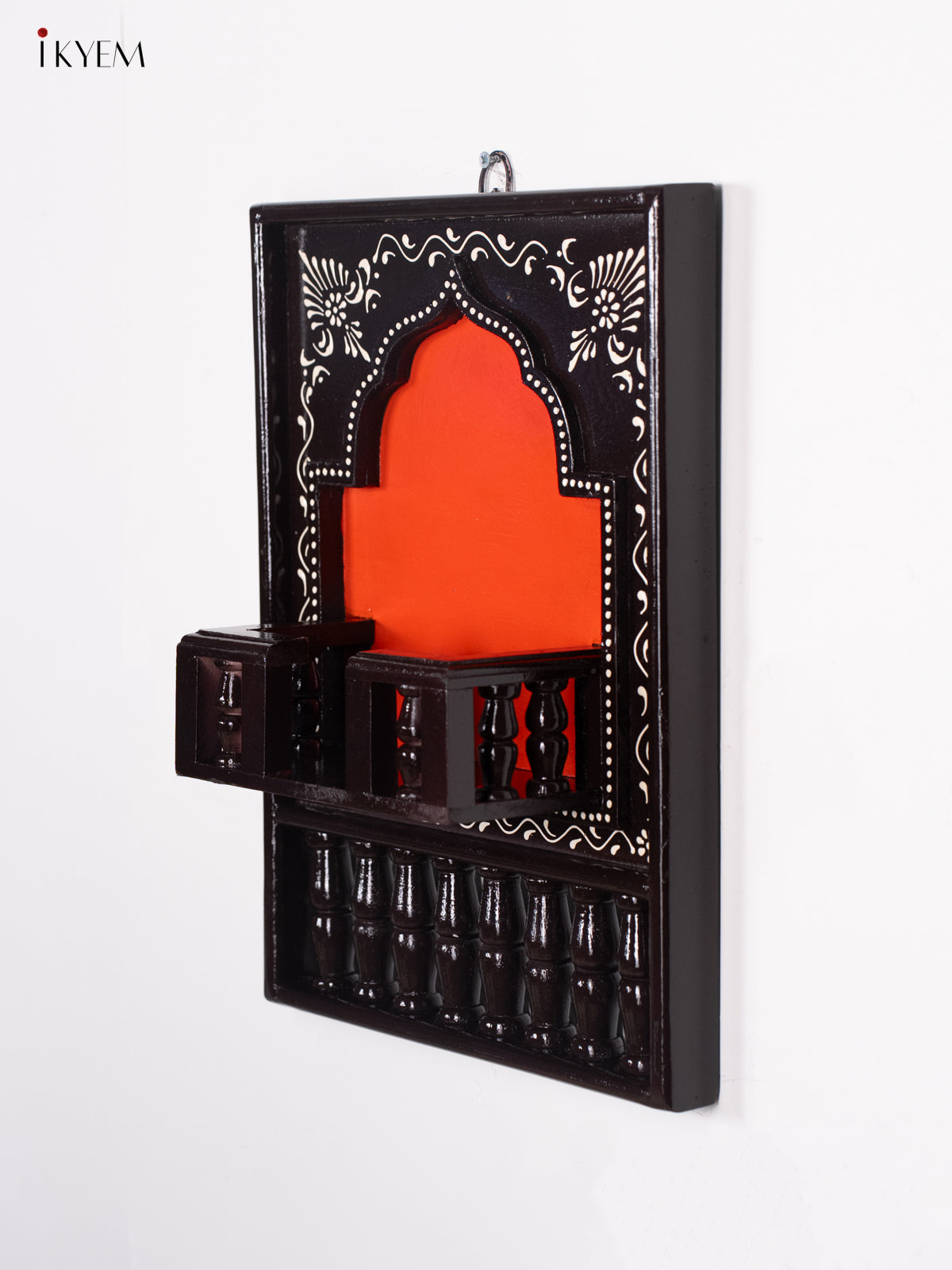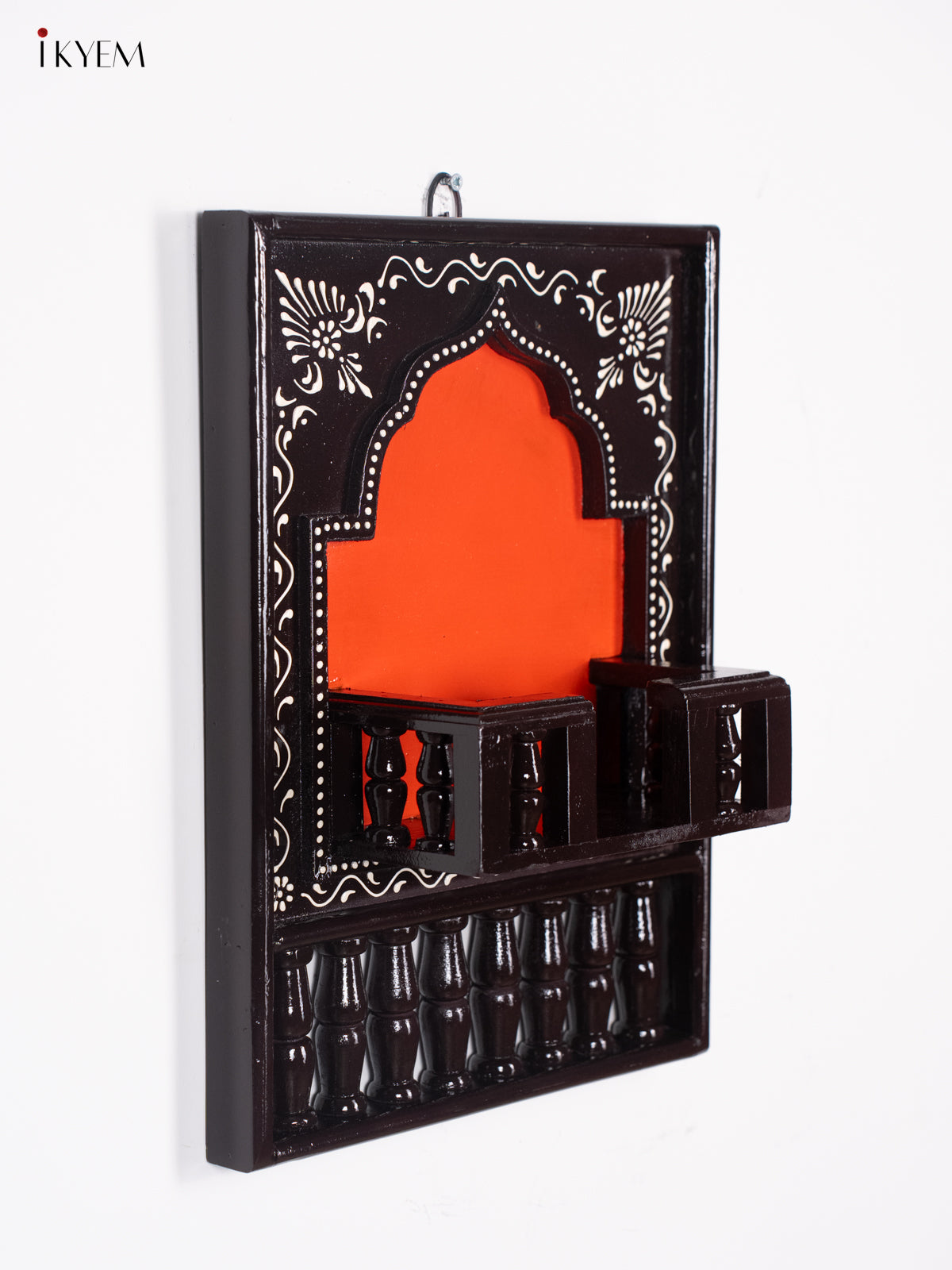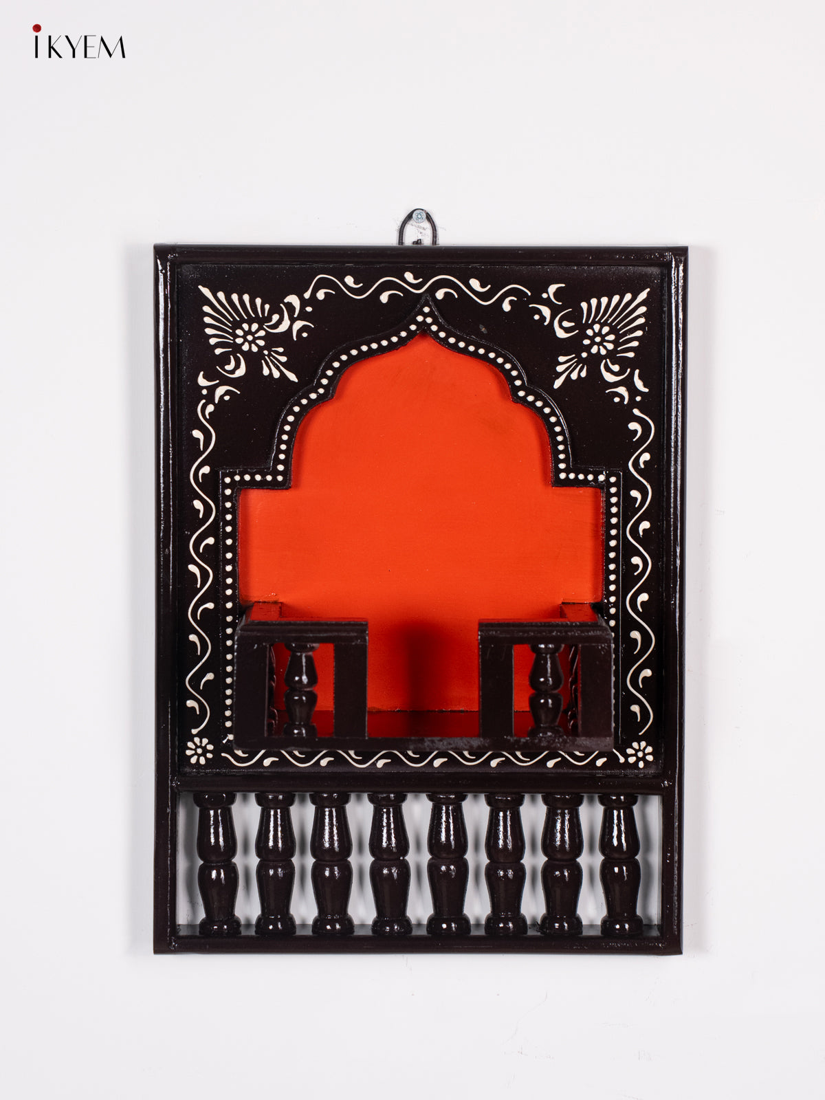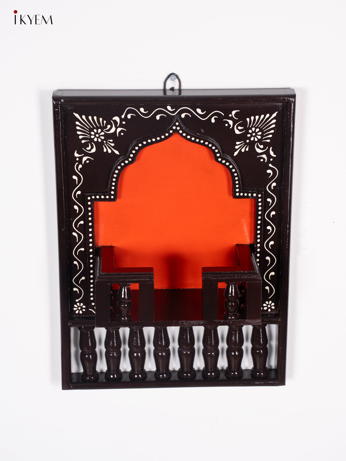 - This 16-inch Wooden Hand Painted Jharokha Frame in coffee brown showcases intricate craftsmanship and traditional artistry.