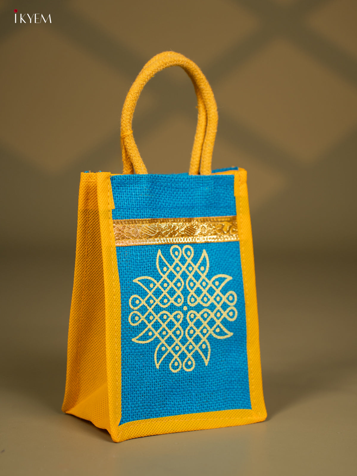 - This Blue Jute Bag with beautiful Kolam Design is an eco-friendly and practical gift choice, ideal for Varamahalakshmi & Navaratri celebrations or as a thoughtful utility gift.