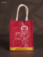 Cute Krishna Printed Maroon Jute Bags - 8 Inch - KK15113