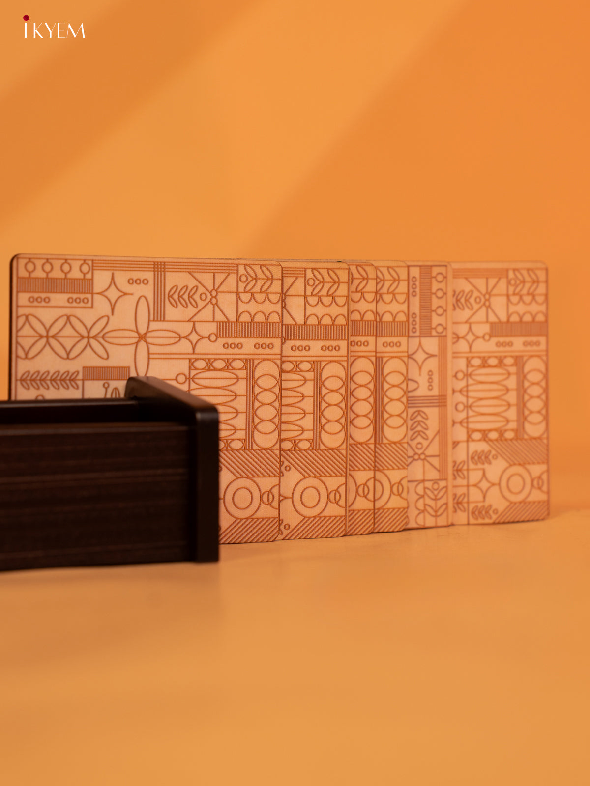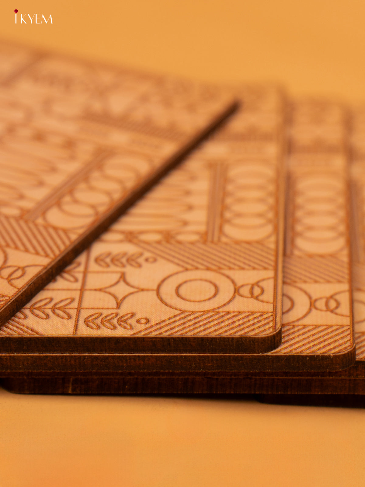 - Enhance your dining experience with our Line Art Wooden Coaster set.