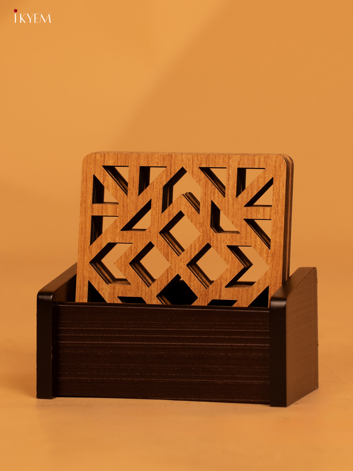 - Add a touch of elegance and functionality to your dining experience, office desk, or home organization with our Geometric Wooden Laser Coaster set.