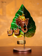 Metal Hand painted Leaf Ganesha T - Light Candle Holder - Sandal - KH30134