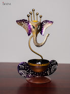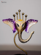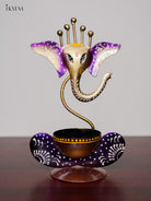 Iron Hand Painted Ganesha T-light Holder - Violet - 11 Inch - KK04118