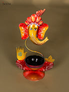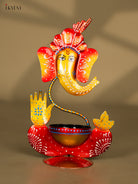 Iron Hand Painted Ganesha T-light Holder - Red 11 Inch - KK20116