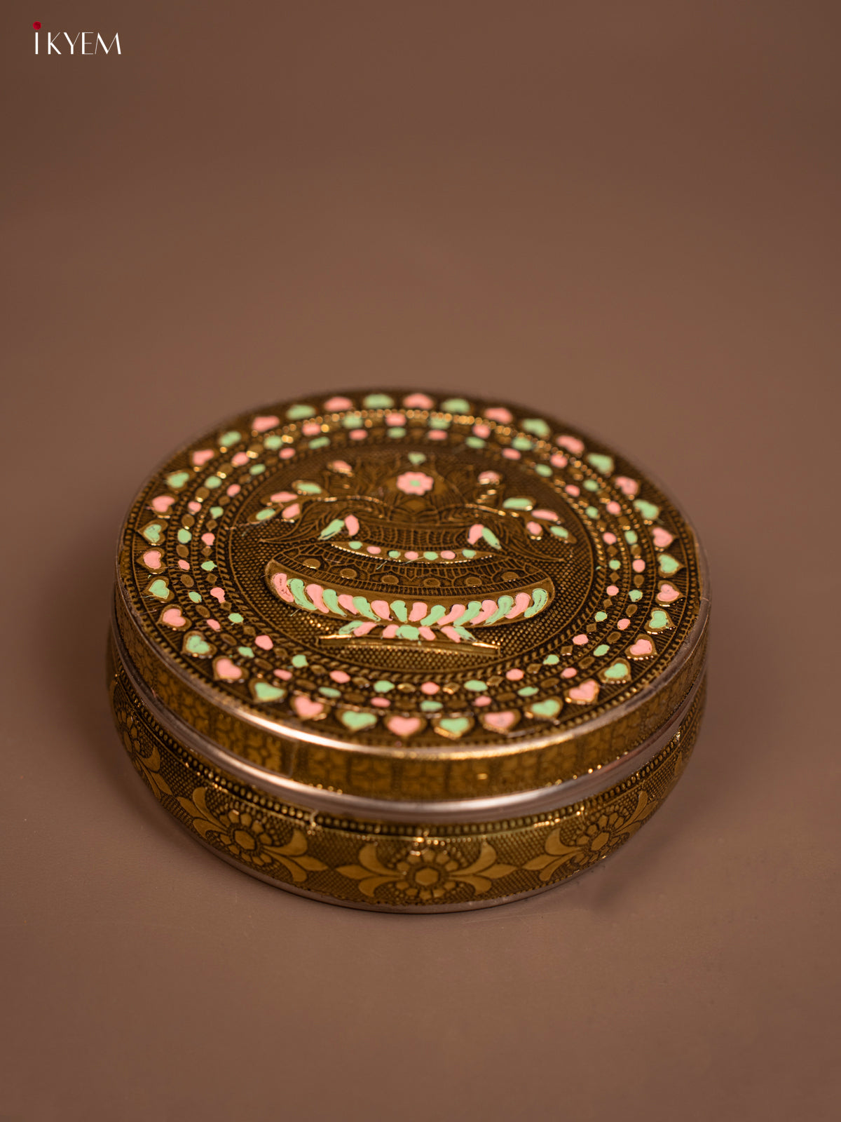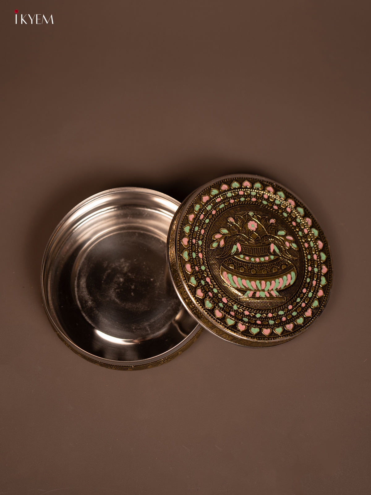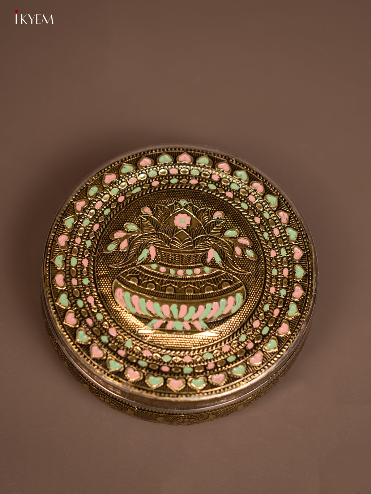 Antique Meenakari kalasam Printed Round Dabba - KF06119