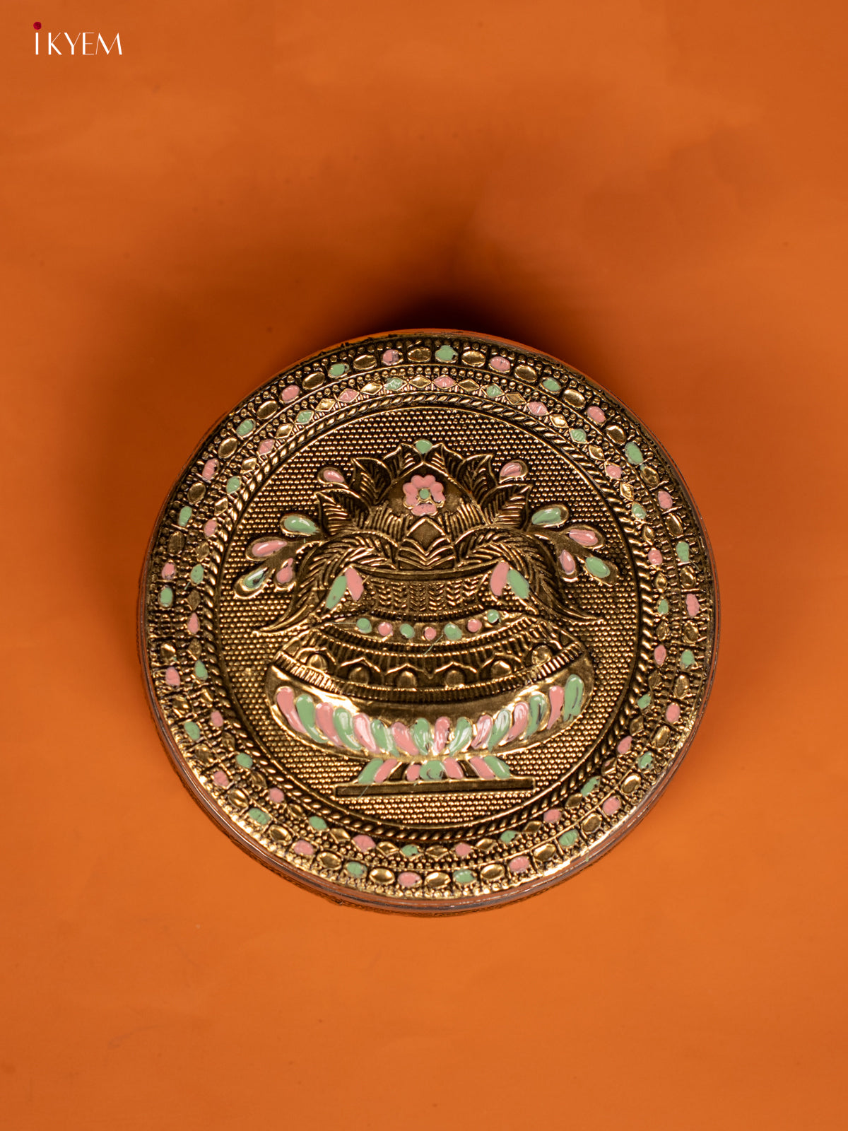 Elegant Round Dabba With Meenakari kalasam Design - KF06120