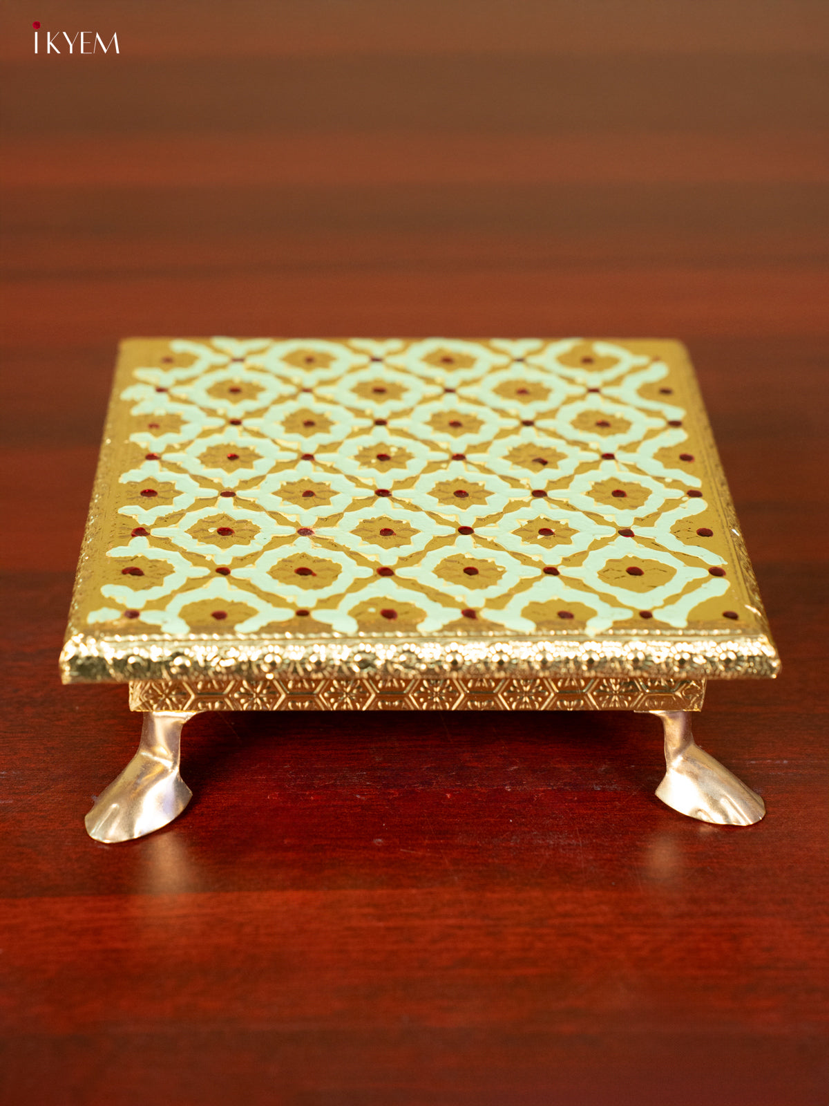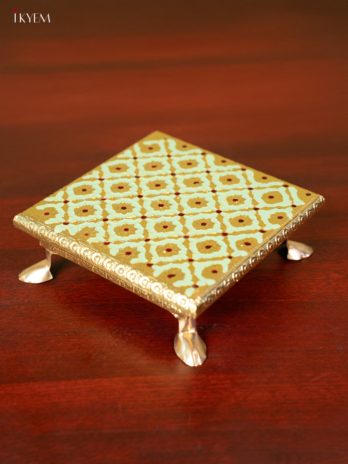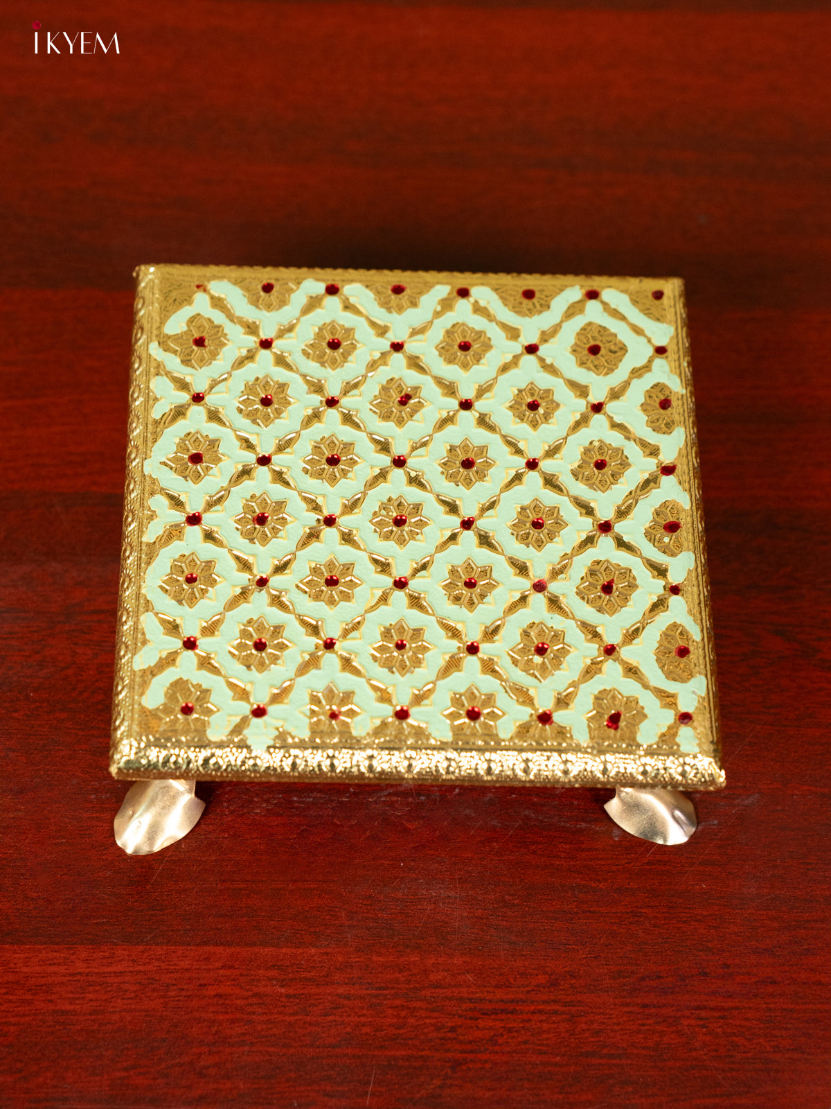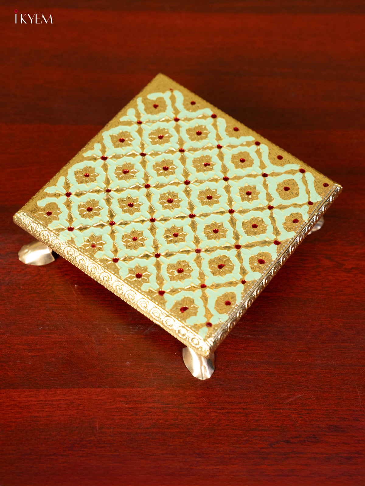 - Elevate your pooja experience with the 6X6 elegant Meenakari Green Chowki.