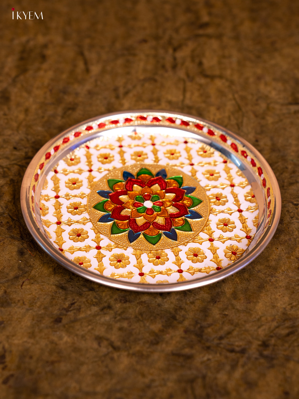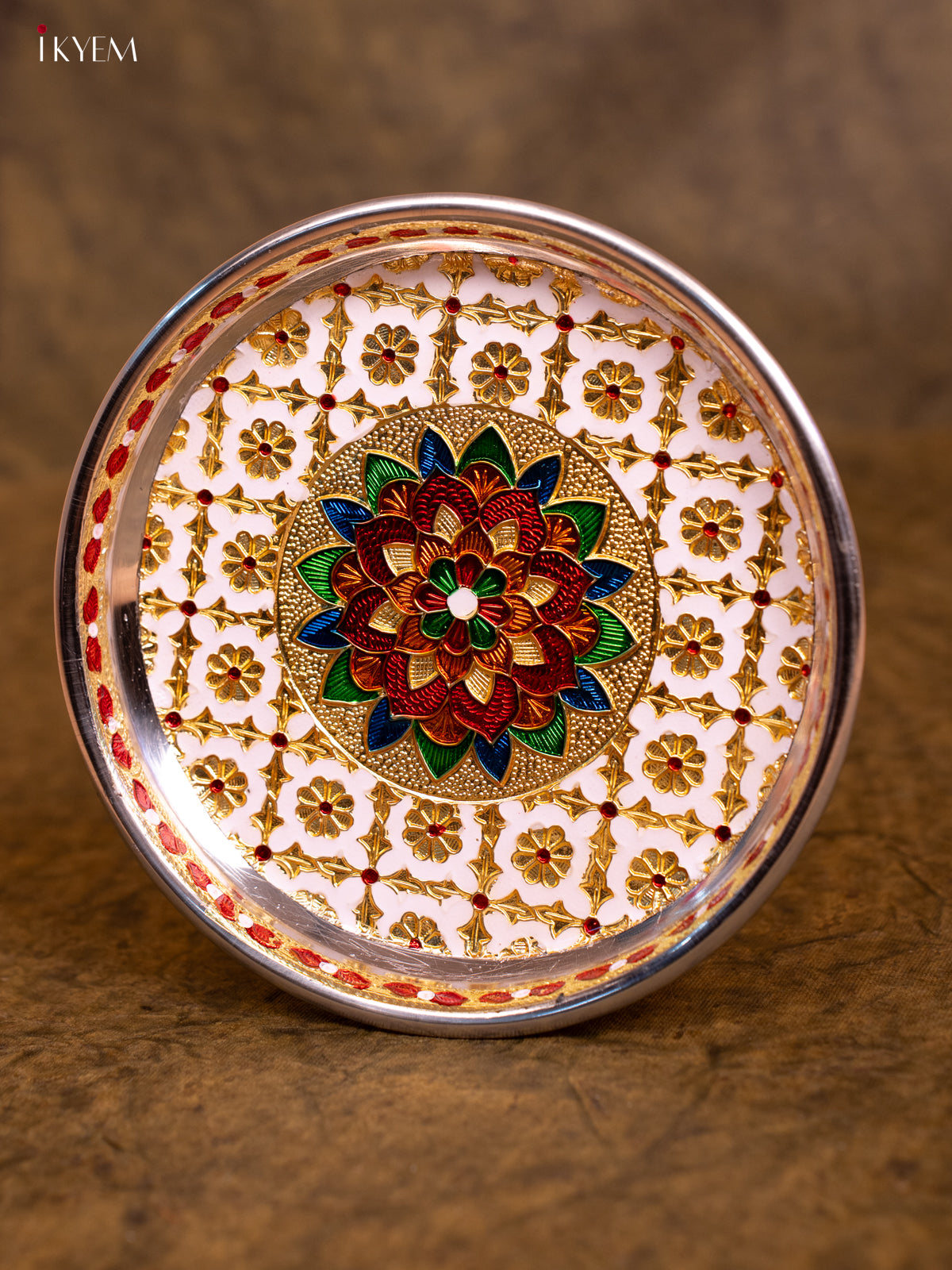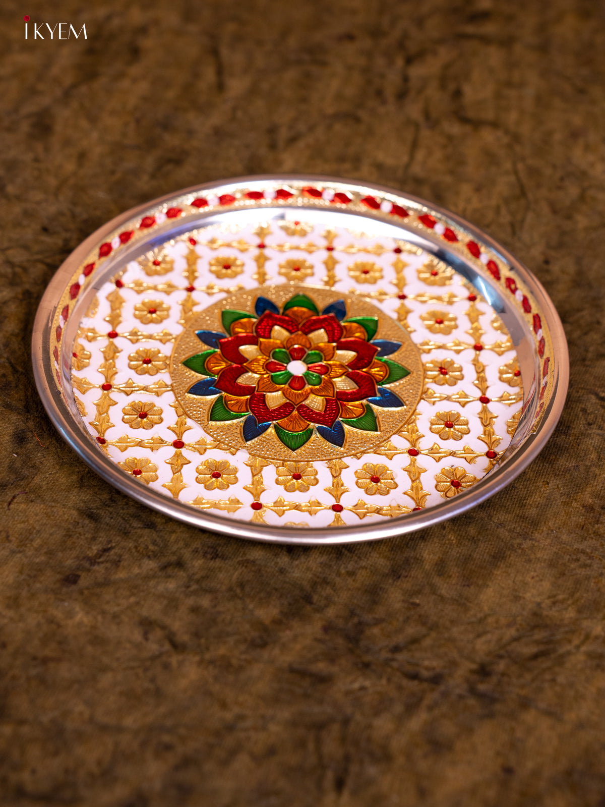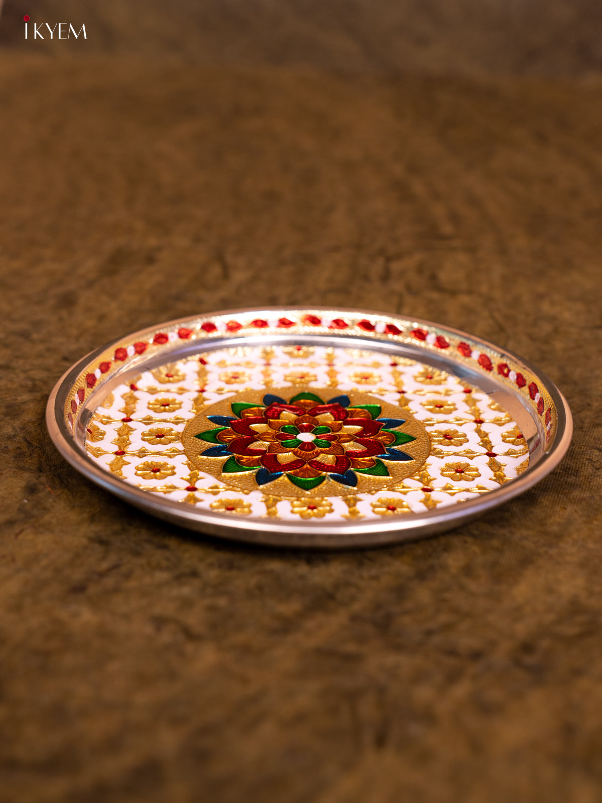 - This Meenakari Plate Round in White is the perfect addition to your table settings and decor.