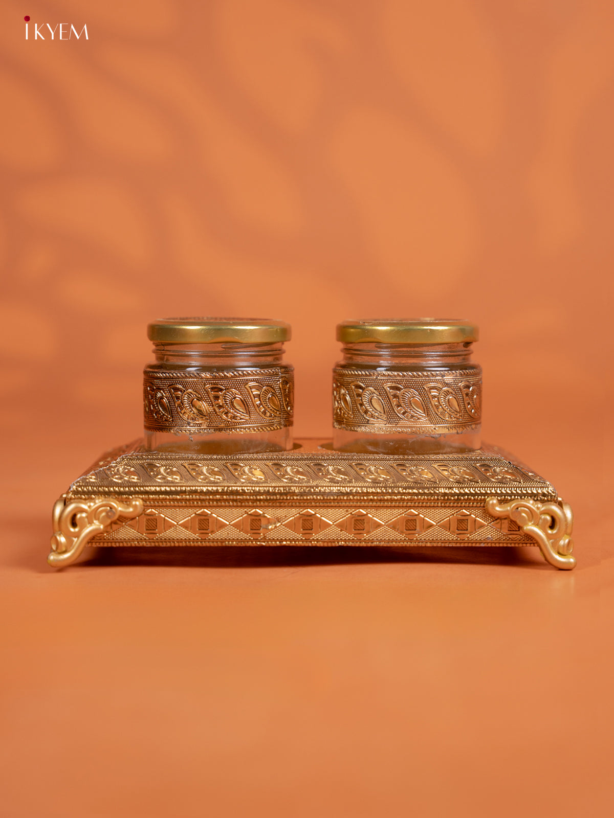 Set Of 2 Oxidized Gold Dry Fruit jars with Tray - KD30128