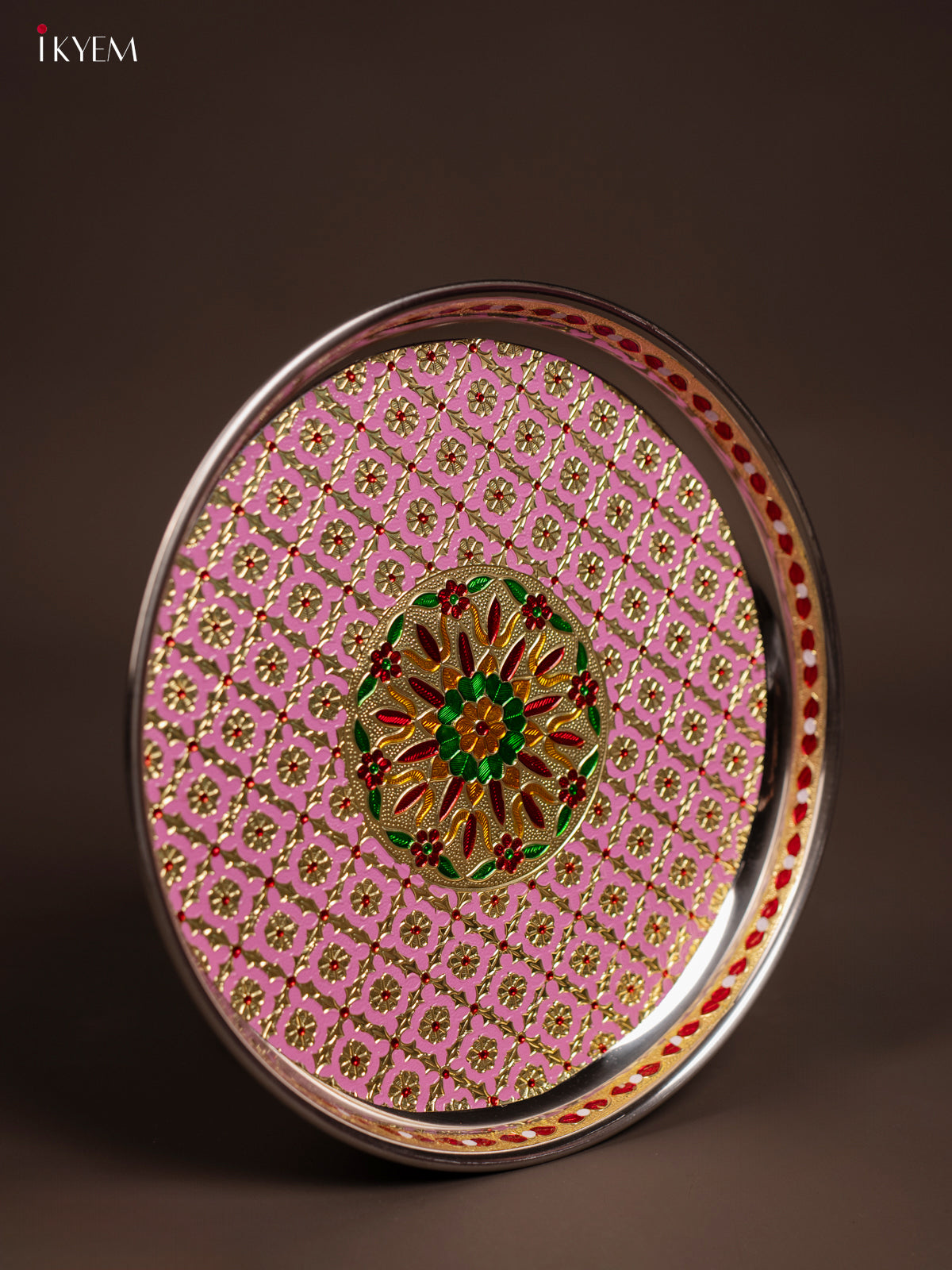 - This Meenakari Plate Round in Pink is a perfect addition to your table settings and decor.