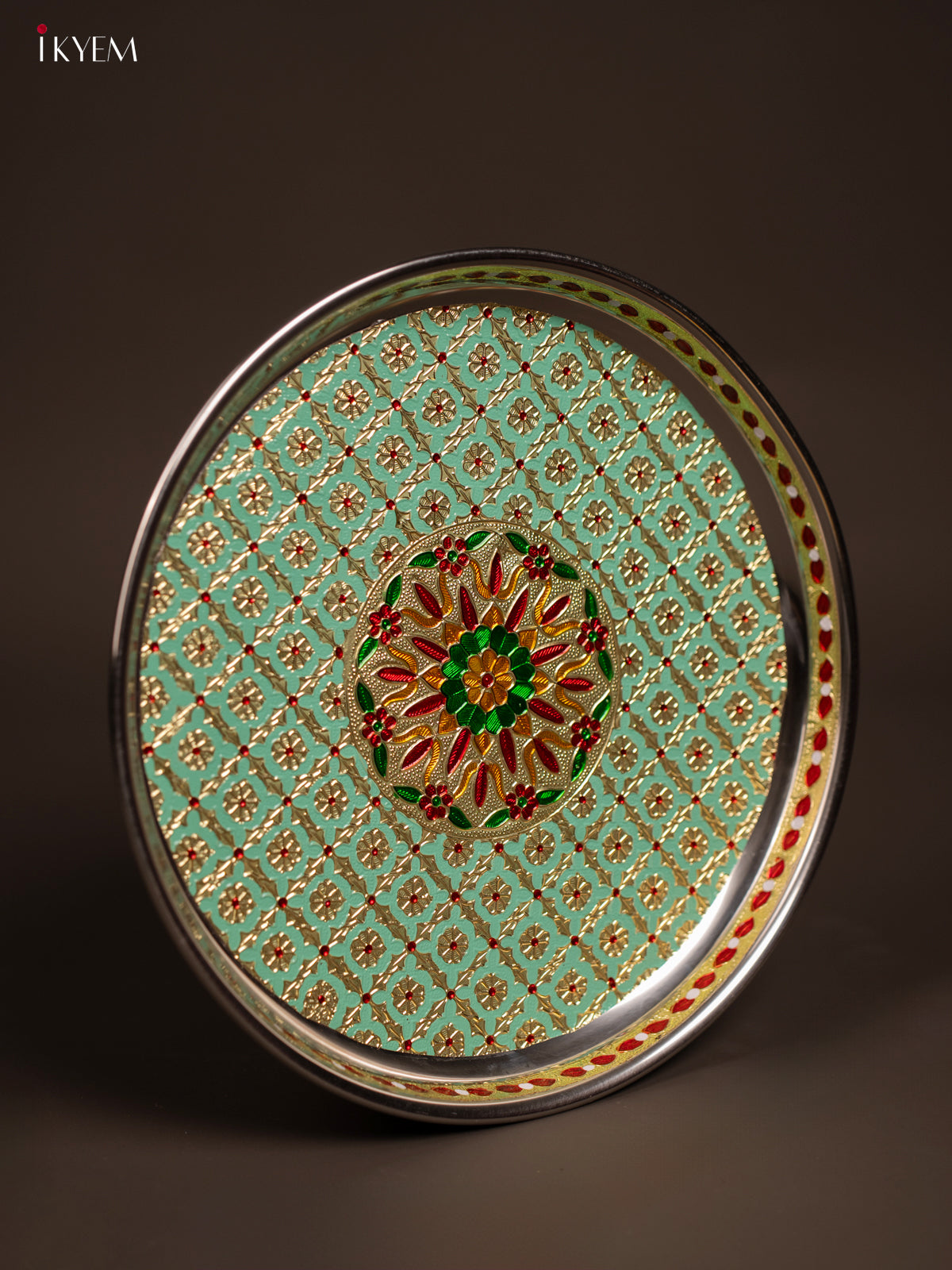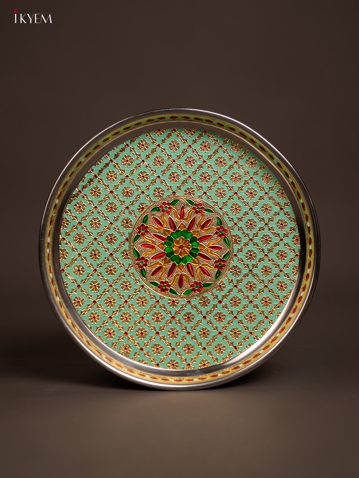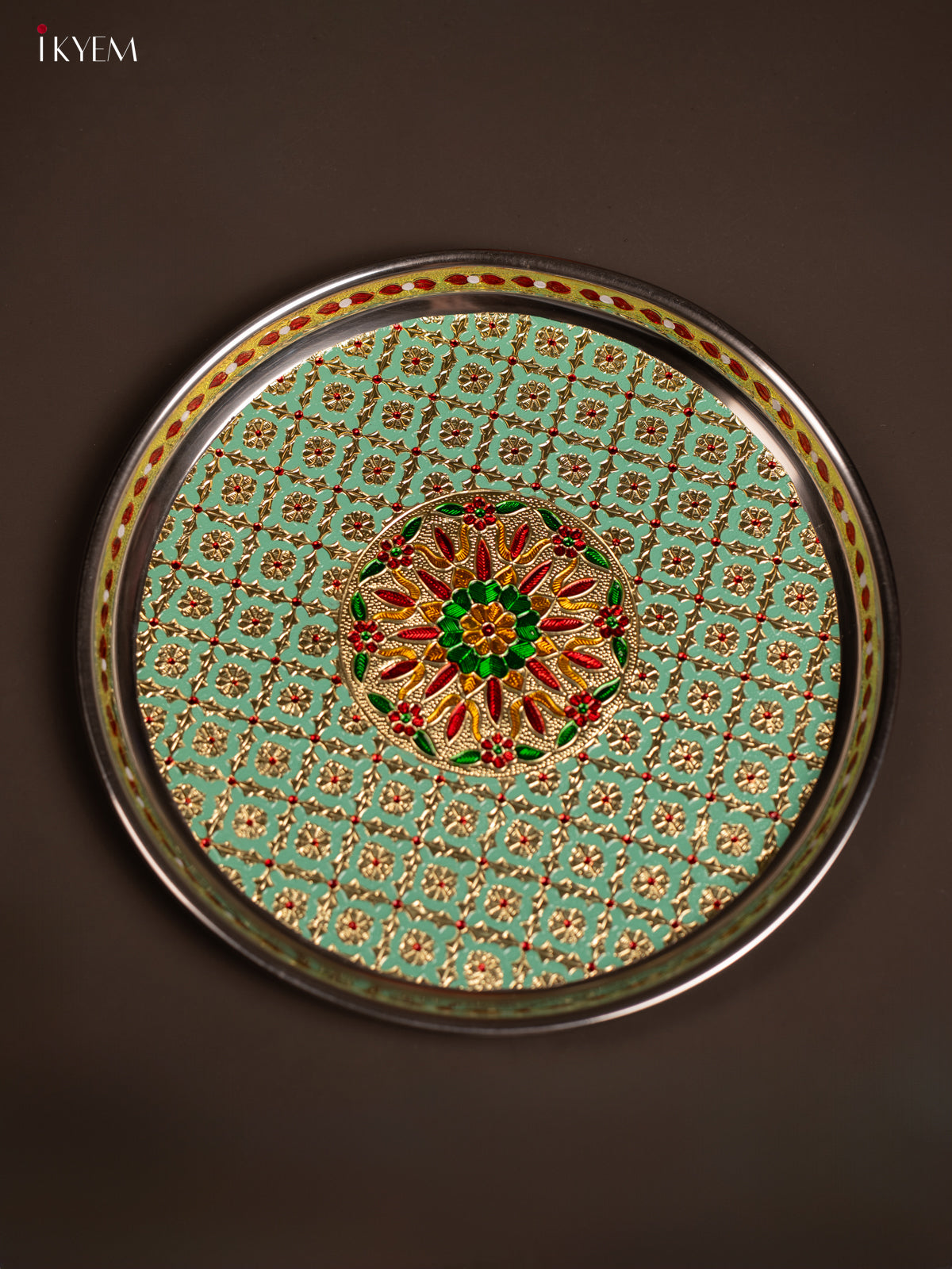 - This Meenakari Plate Round in Green is a perfect addition to your table settings and decor.