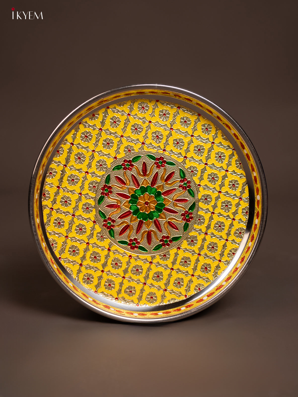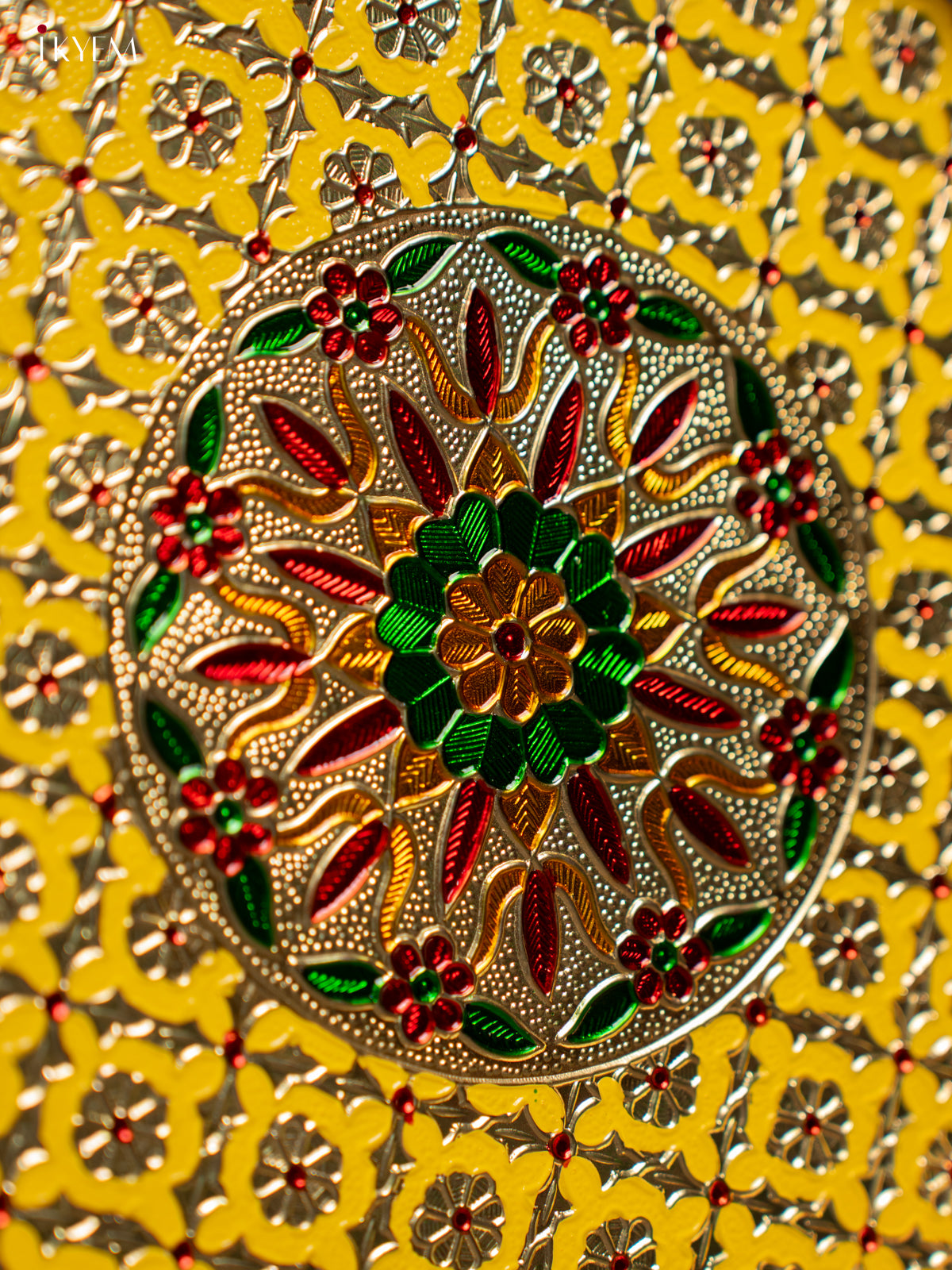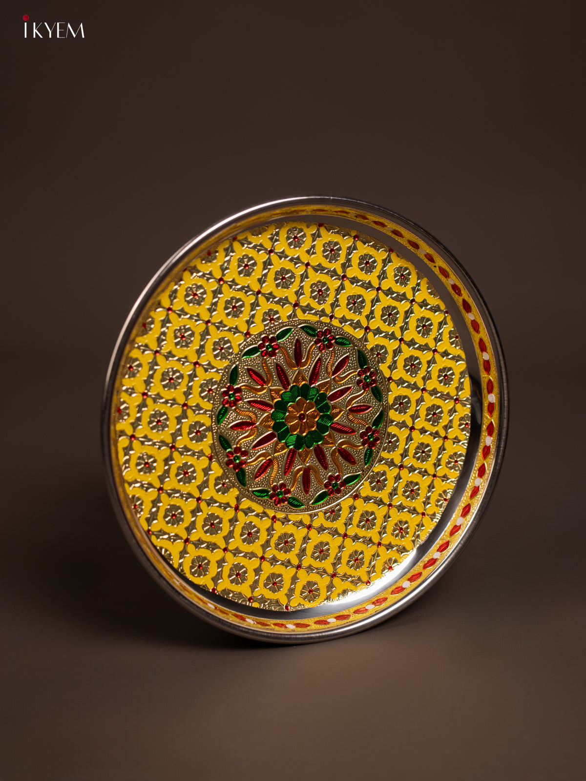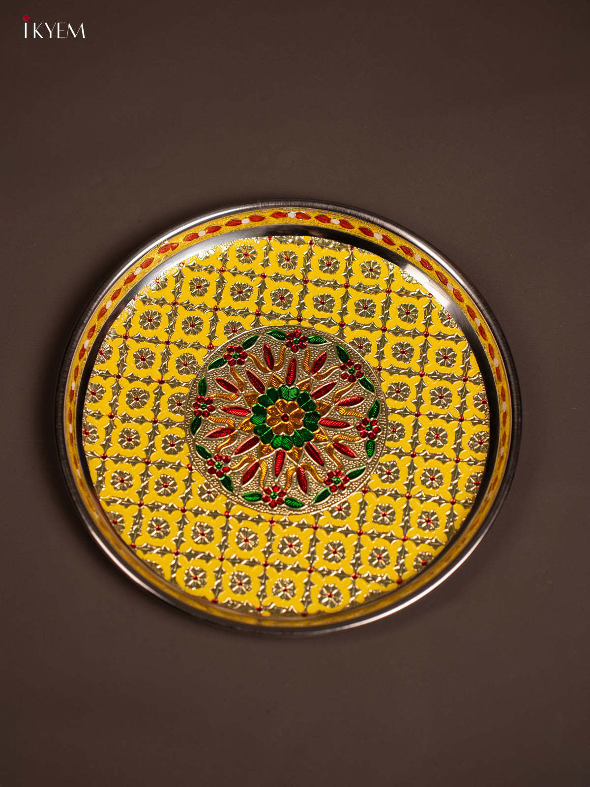 - This Meenakari Plate Round in Yellow is a perfect addition to your table settings and decor.