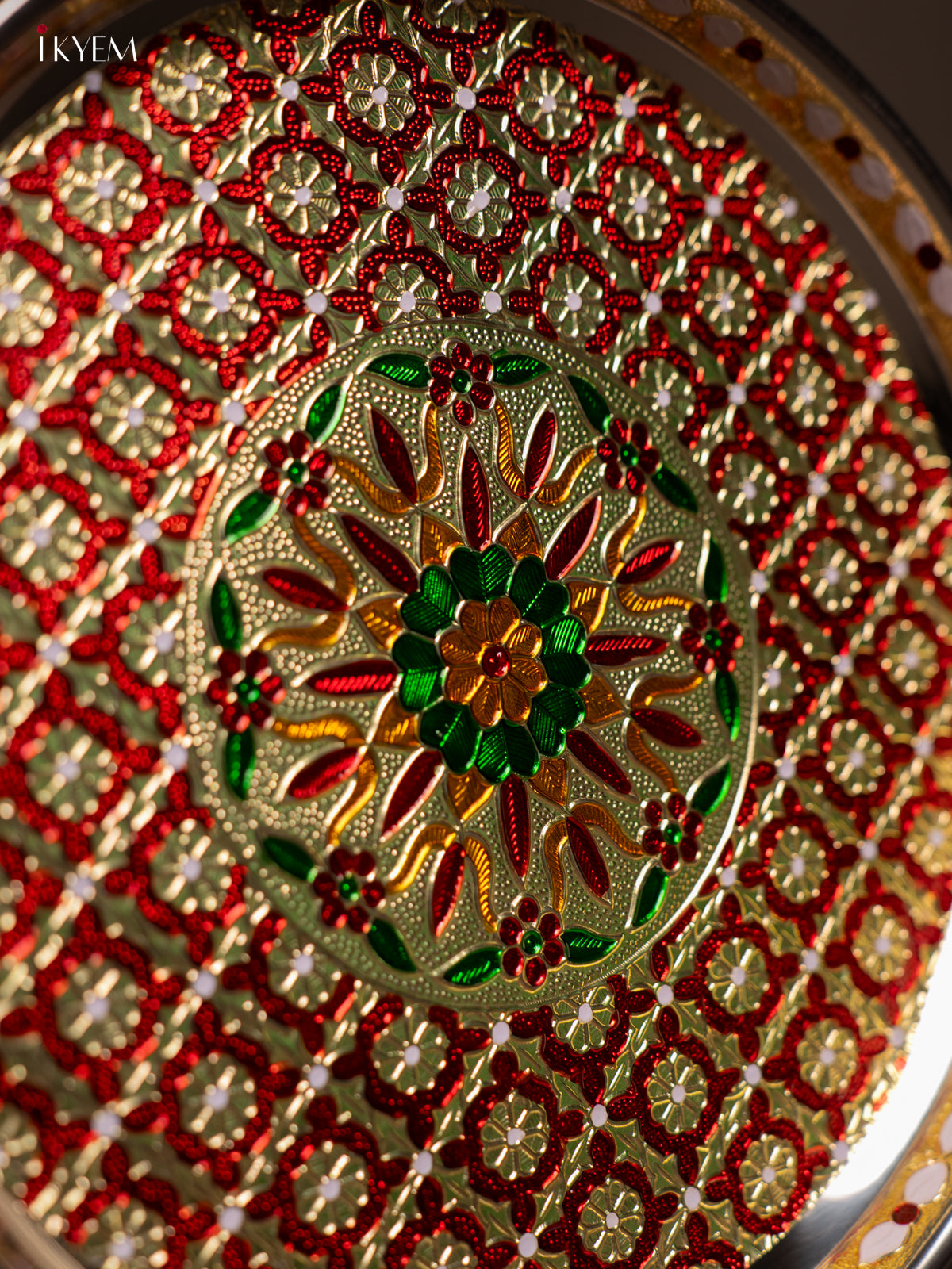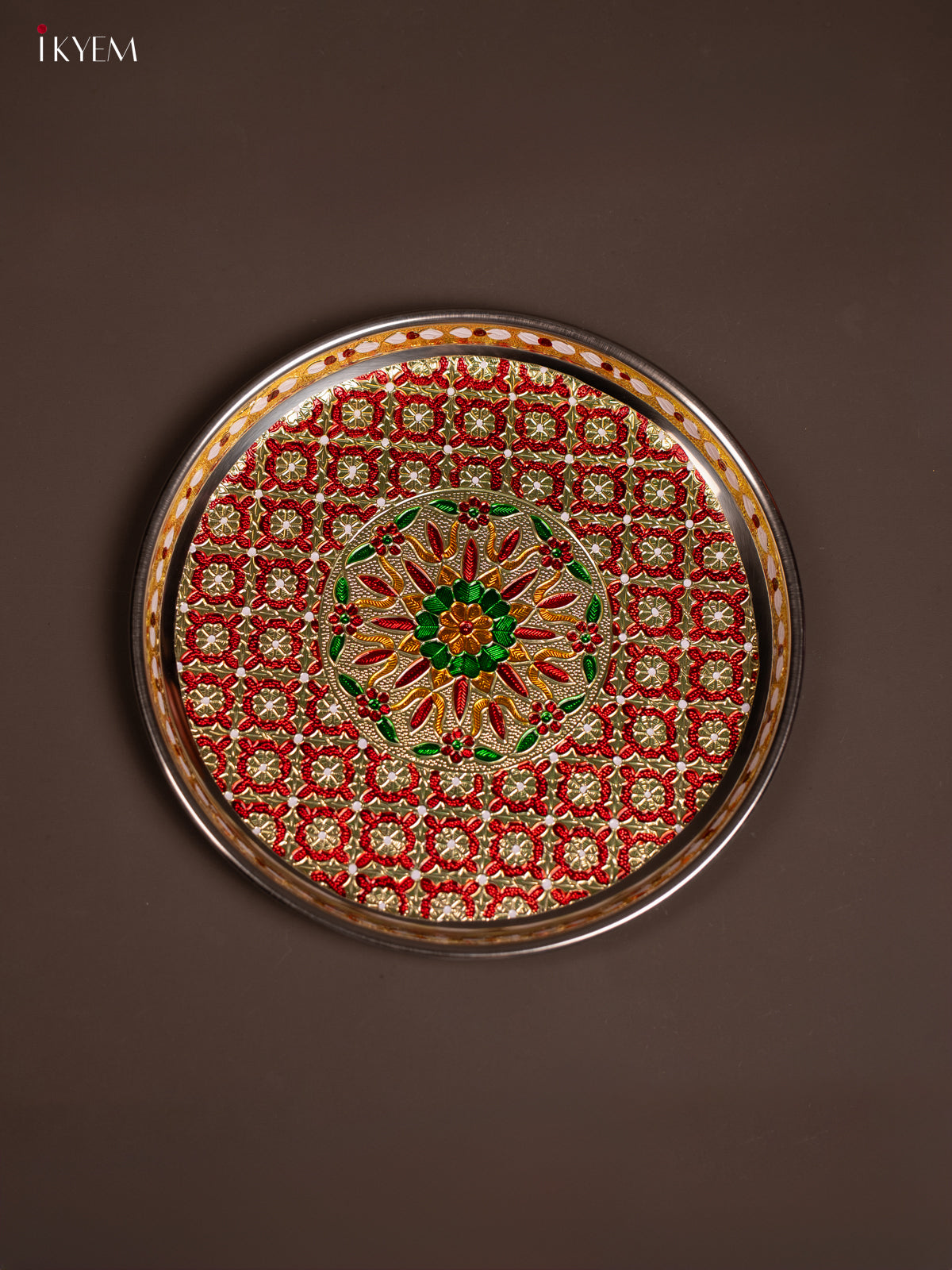 - This Meenakari Plate Round in Red is a perfect addition to your table settings and decor.