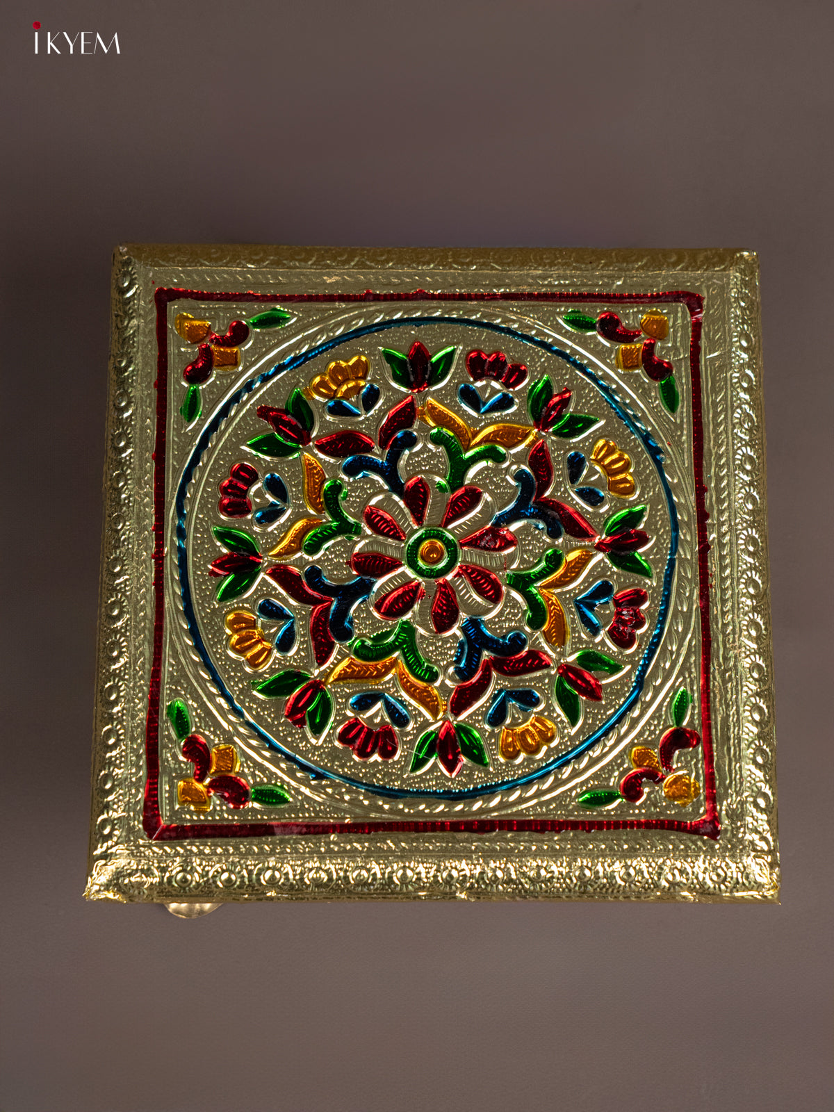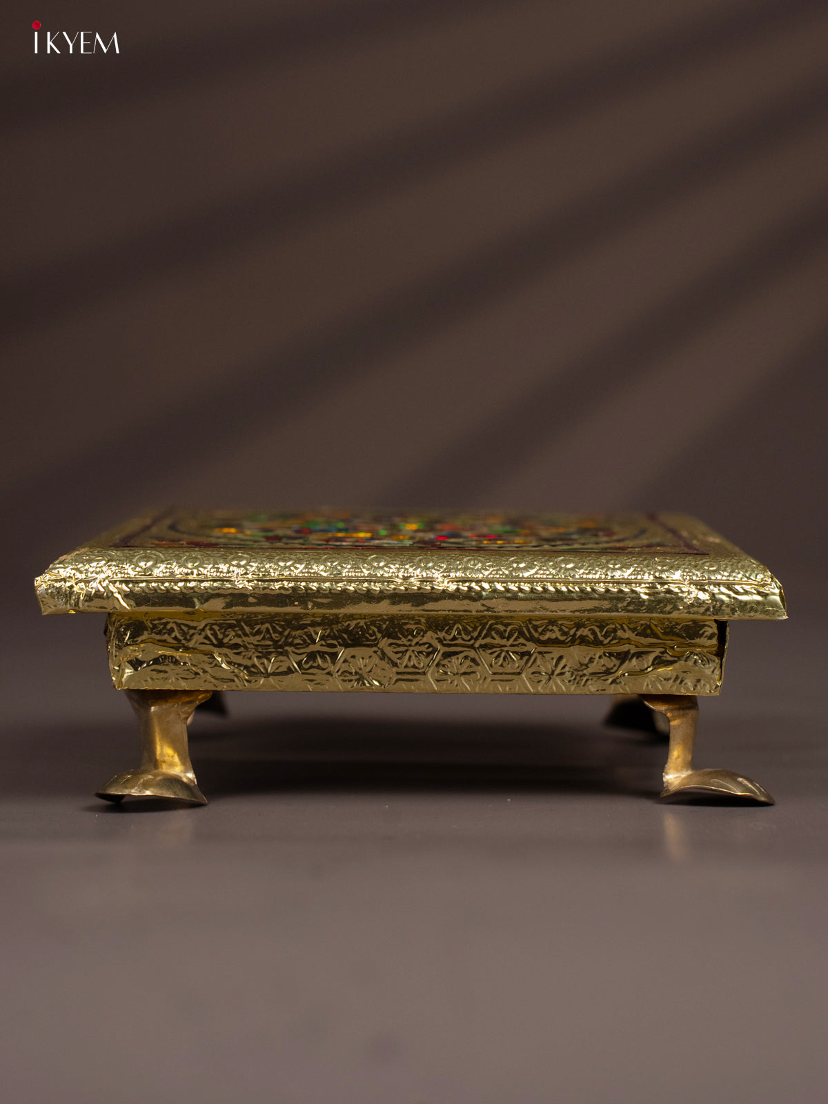 - The Meenakari Manai- Peacock- KG21112 is an exquisite decorative item designed to enhance your rangoli art, serve as a thoughtful return gift, or complement your pooja setup.