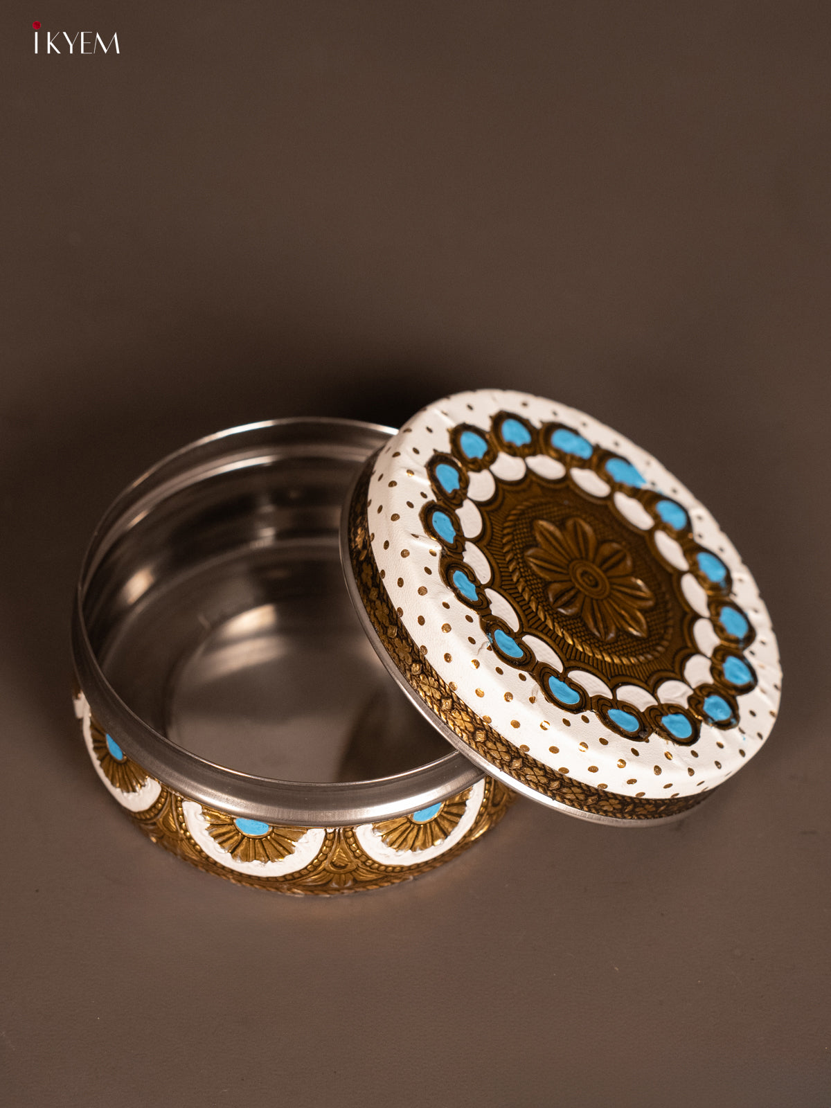 - This oxidised white steel box (4x4 inches) is designed for versatile use, including as elegant return gifts or practical storage solutions.