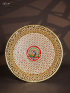 Meenakari Round Plate - White (15.5x15.5) Inches- KI03114