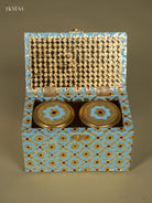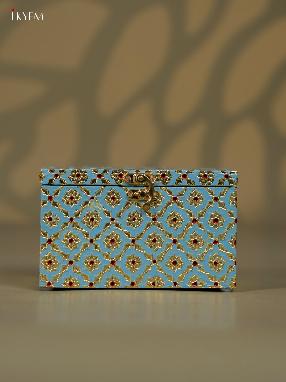 - Crafted with intricate Meenakari artistry and a sturdy wooden box finished in elegant blue, this box combines beauty with functionality.